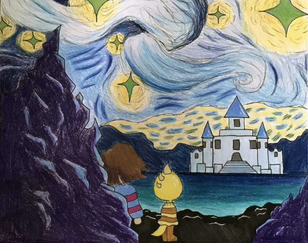 Artist Statement: Bats are important to me because they are one of the best natural indicators of the health of our environment. Bats also control pest control, they are seed distributors, and pollinators. I was inspired me to learn about bats because they are the only mammals that can really fly. Their wings are like human hands but have very long fingers and the skin is stretched out between them. I created my art piece by painting a watercolor sunset as my background and decided to put a moon as well, since bats are nocturnal. I wanted to draw my bat with color pencils and markers. A message I would like to give is that people should stop being afraid of bats and that they are essential to human life.