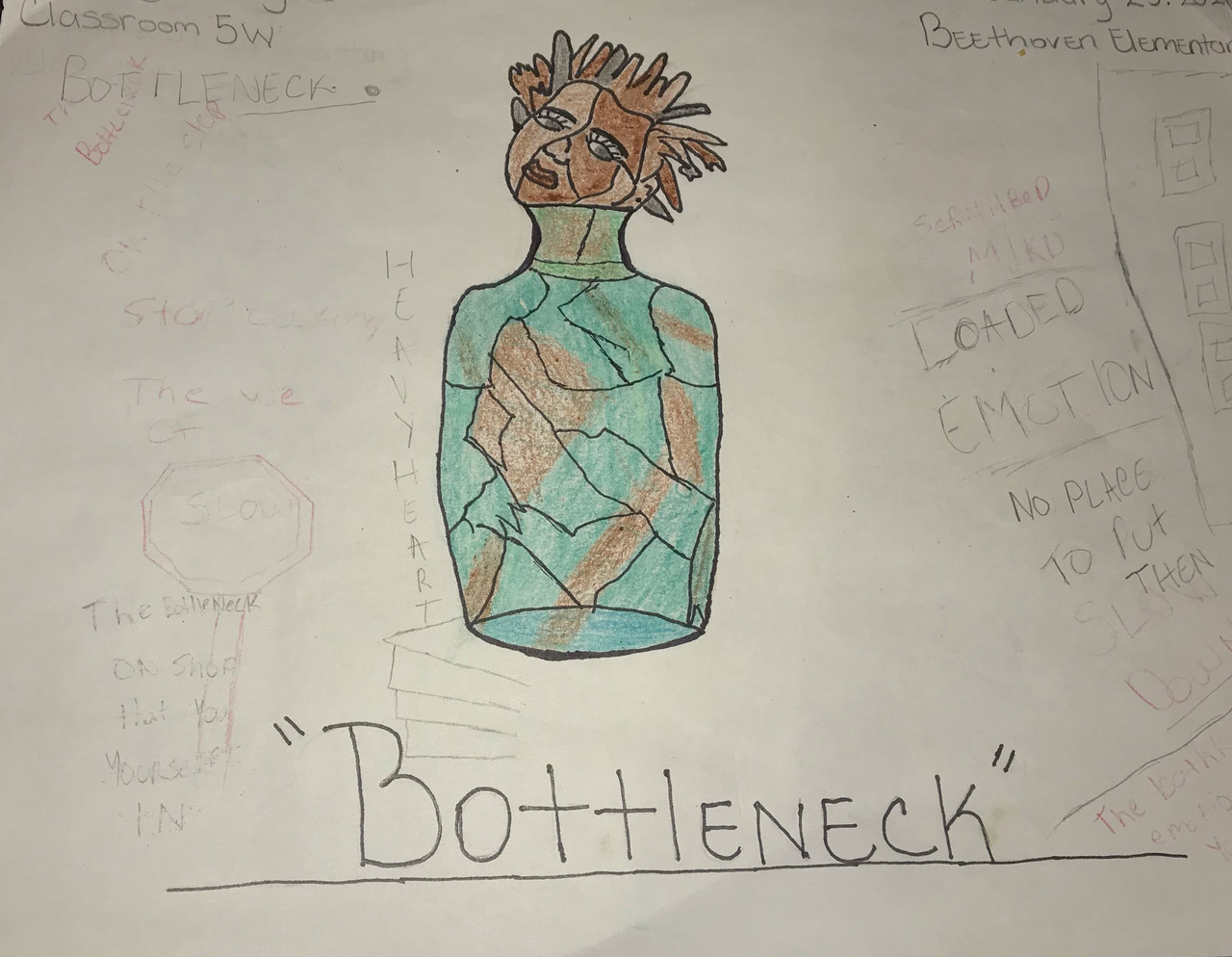 Artist Statement: I chose the drawing Bottleneck because it means a lot to me how it brings out art by showing so much color. This drawing also exposed my talents. Bottleneck inspired me to do more art pieces like this!