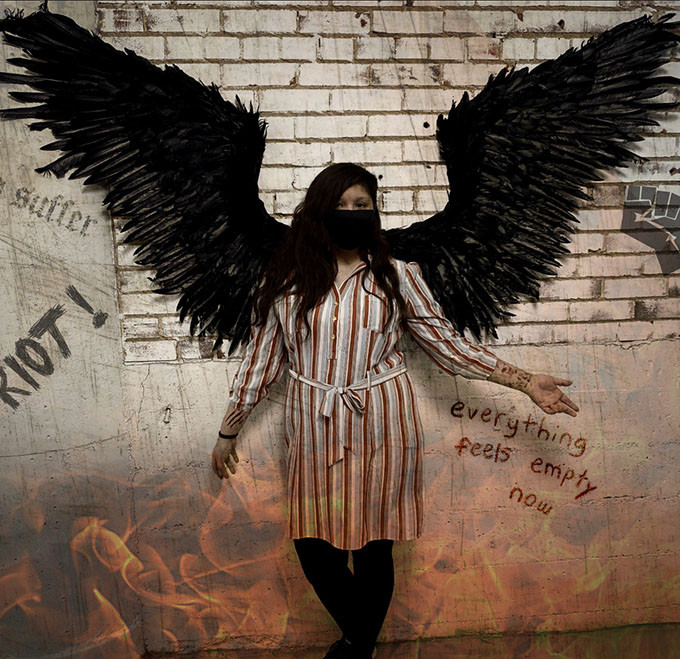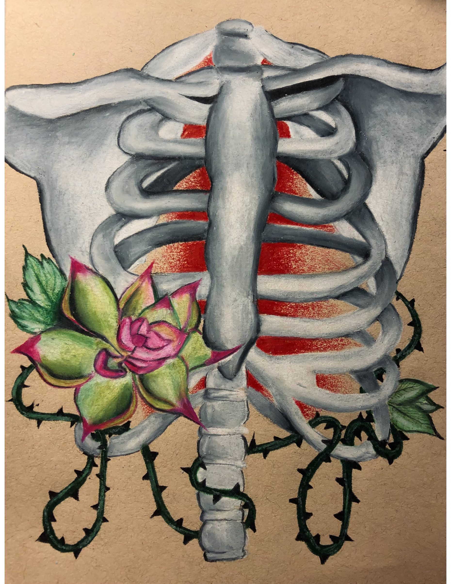 Artist Statement: “Thorned” reveals the subject’s intention to grow, shown by the plants. Positivity is thrived for, but the vines with thorns reveals that it can be difficult to do so and it creates a setback.