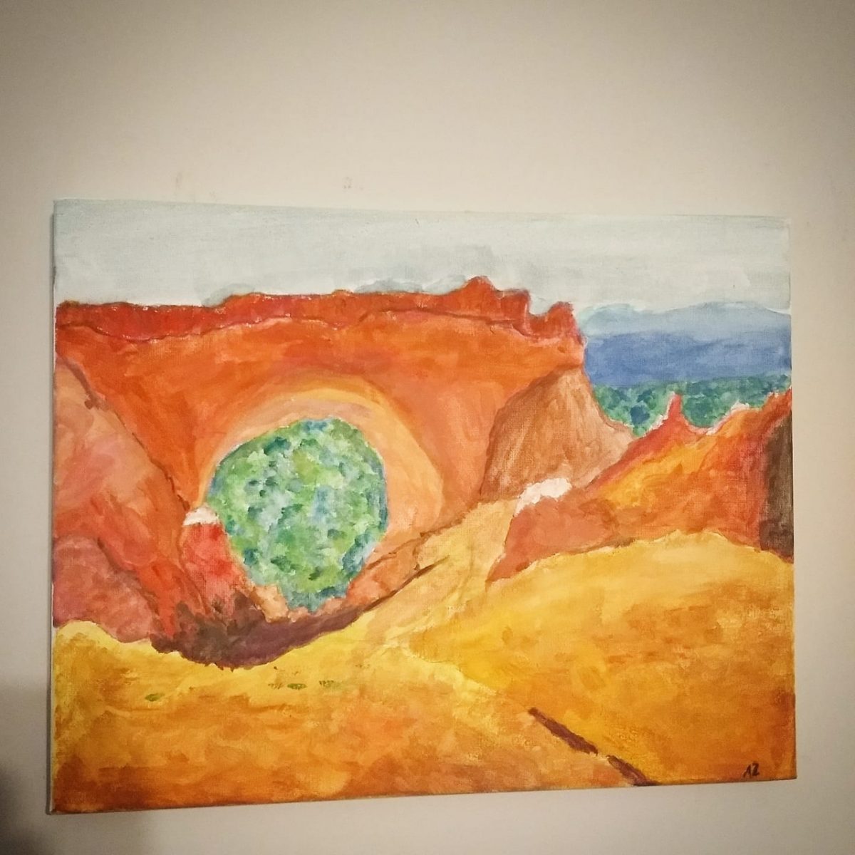 When I create paintings I begin with an initial concept of what I’m trying to create. Then, I sketch a light version of what I’m envisioning as my final product. After sketching I start from the farthest point in my piece to the closest objects since the closer objects require more details. Once I place the base colors I go in to add smaller details with a very thin brush which allows me to create dimension in my pieces.