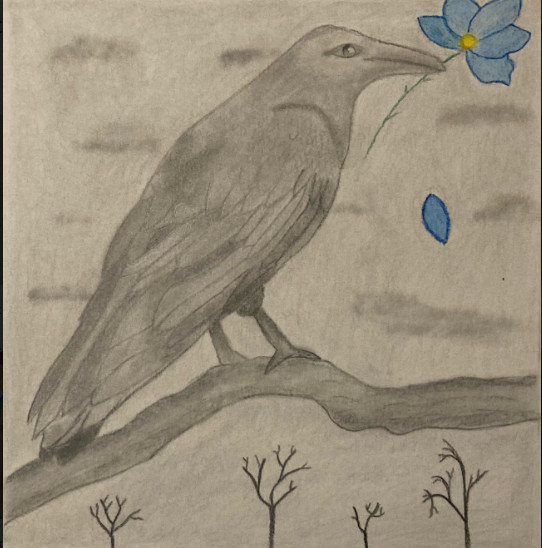 Description: This was my first piece of the school year and I wanted to experiment with mediums that I have never tried before like oil pastels. Also since it was a dry medium I also wanted to emphasize the glue likes.