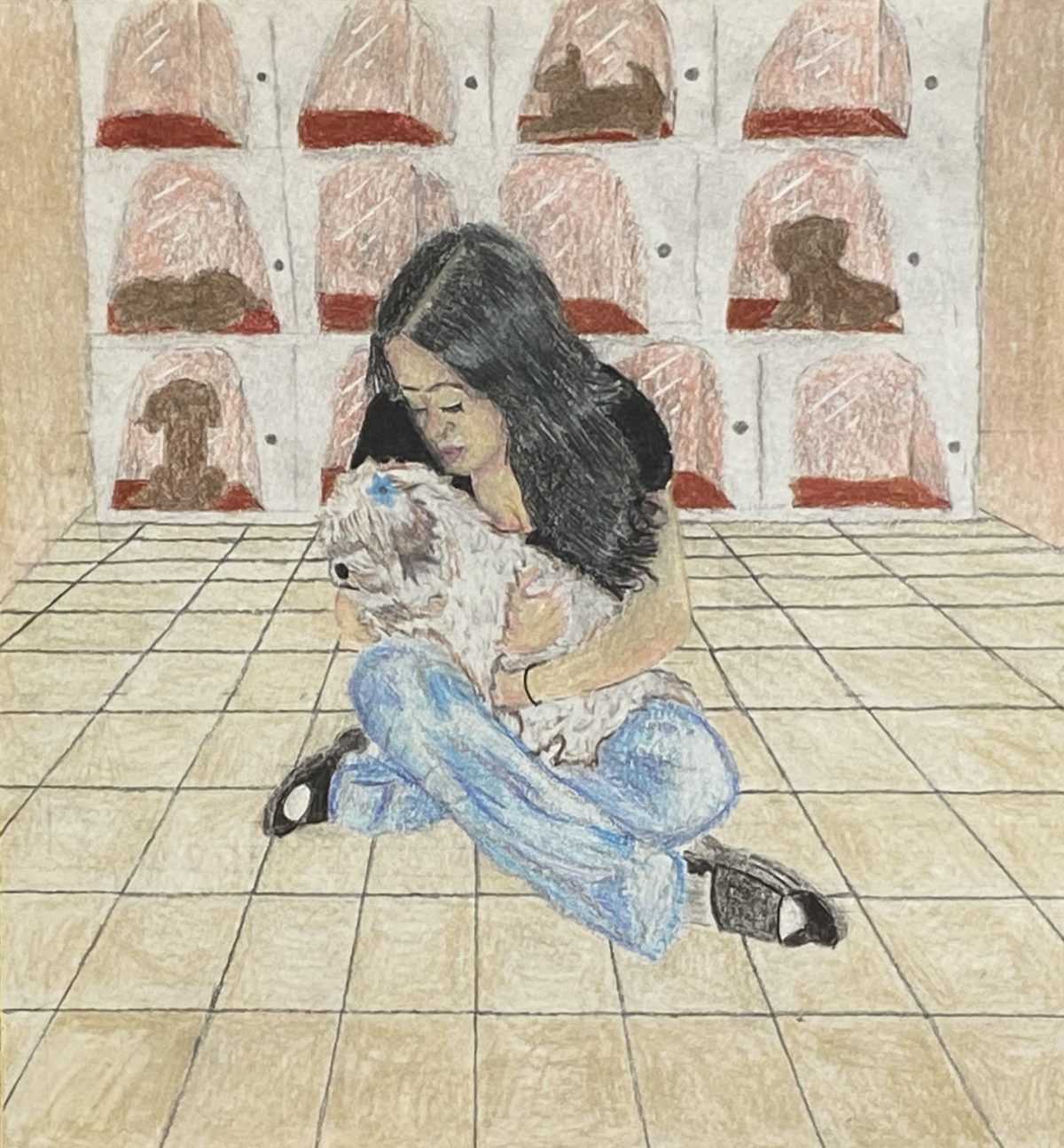 Artist Statement: I’ve been sick for a little over a month and have been slowly recovering. So because feeling half-dead became the norm, I drew this piece to show the sickly nature I have endured through the messy linework (“Meandering Journey”). As I am recovering, I constantly recall the times when I was ill. Coughing fits became a routine, and each cough irritated my throat greatly. This piece was to show a respiratory infection with invasive flowers encompassing the respiratory system (“Floral Invasion”).
