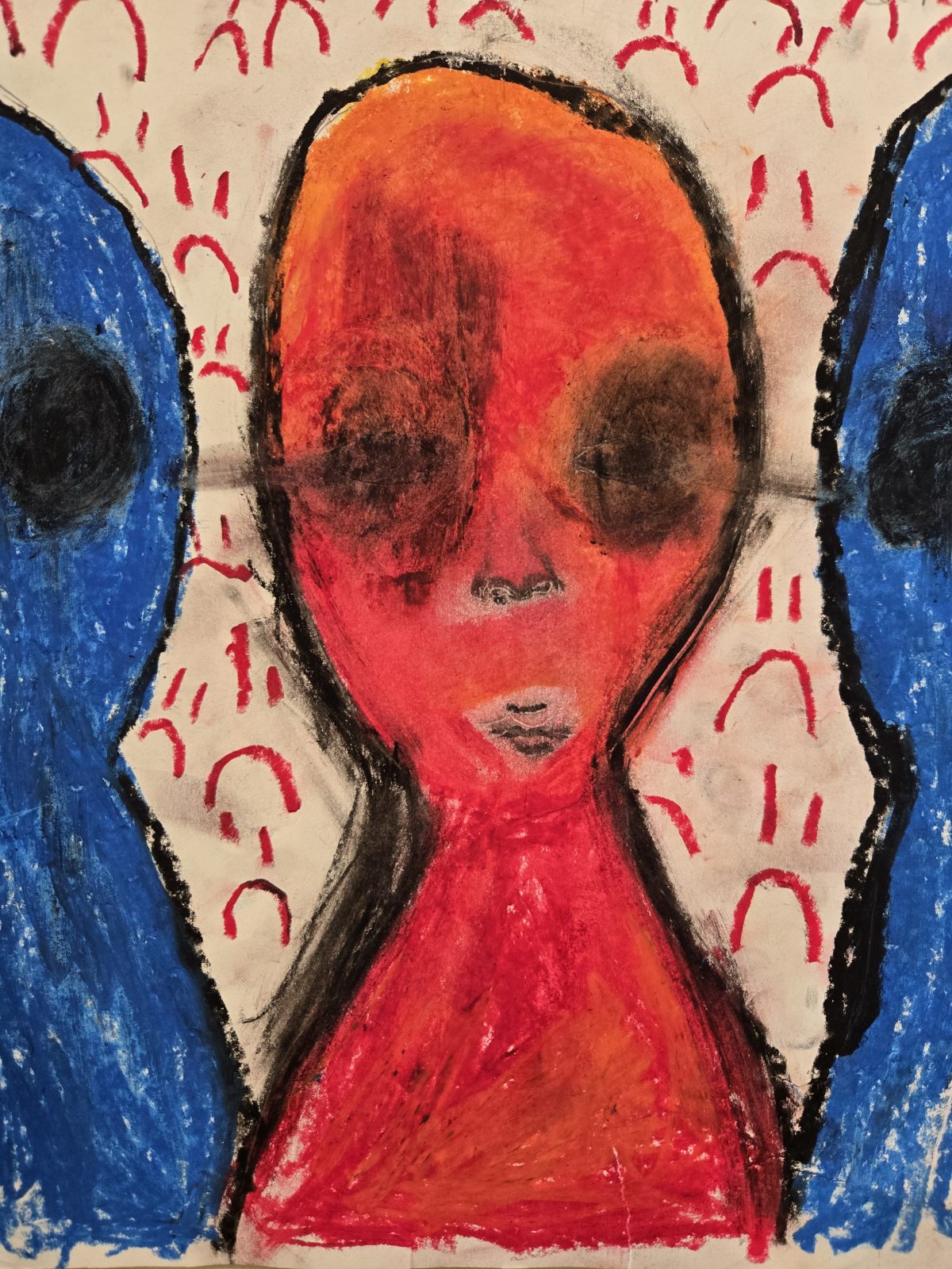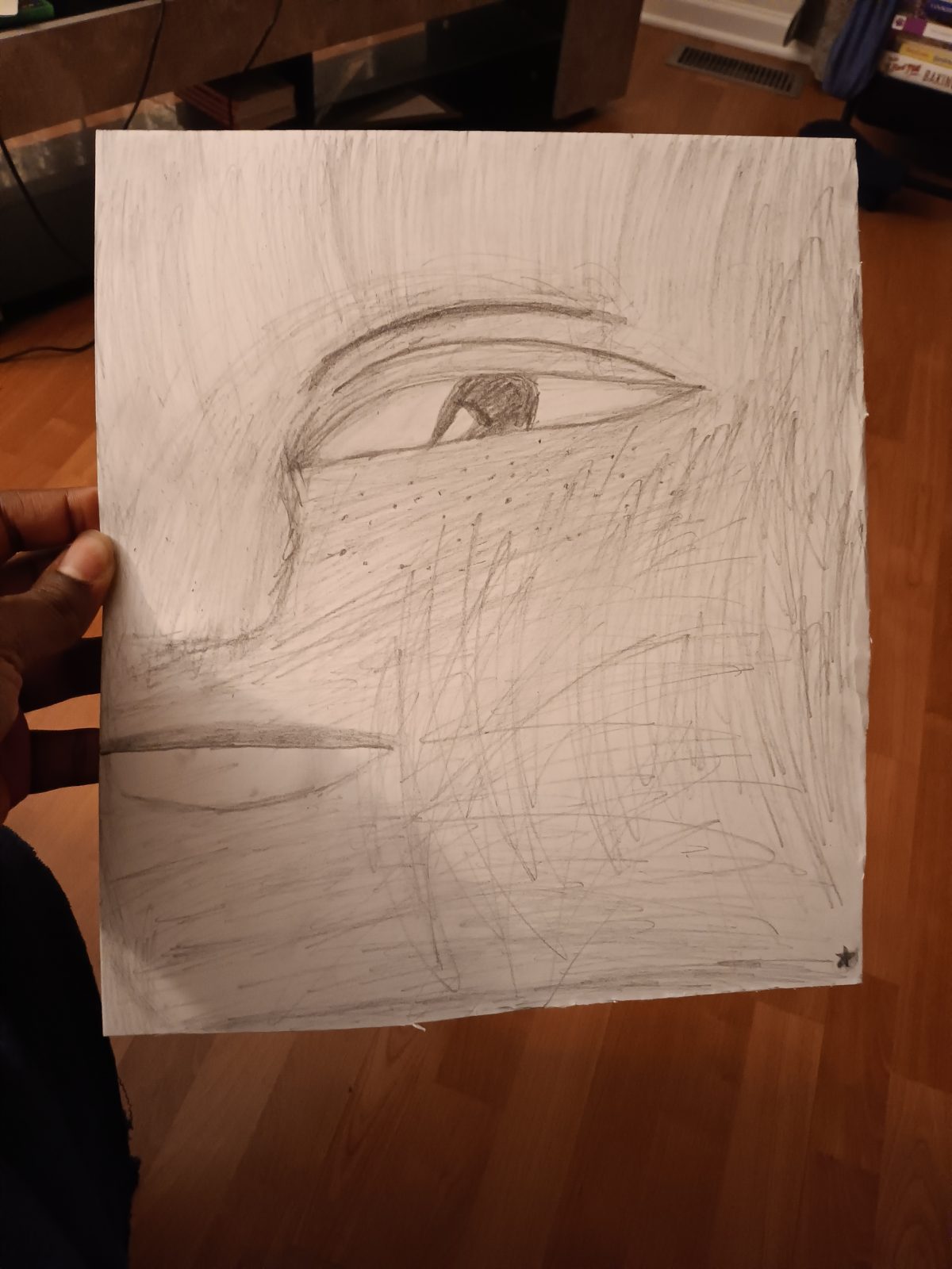 Artist Statement: This artwork displays the image of becoming someone new. It is a scary process and can take many years, but once something starts an epiphany its influence quickly starts to spread. The section in color on the tip of the head means the happy things that happen with a shift in thoughts, which is already starting to possess the woman as it brings back her skin colors. The grayscale of the rest of her body is to illustrate the old and the crawling hand is her epiphany manifesting.