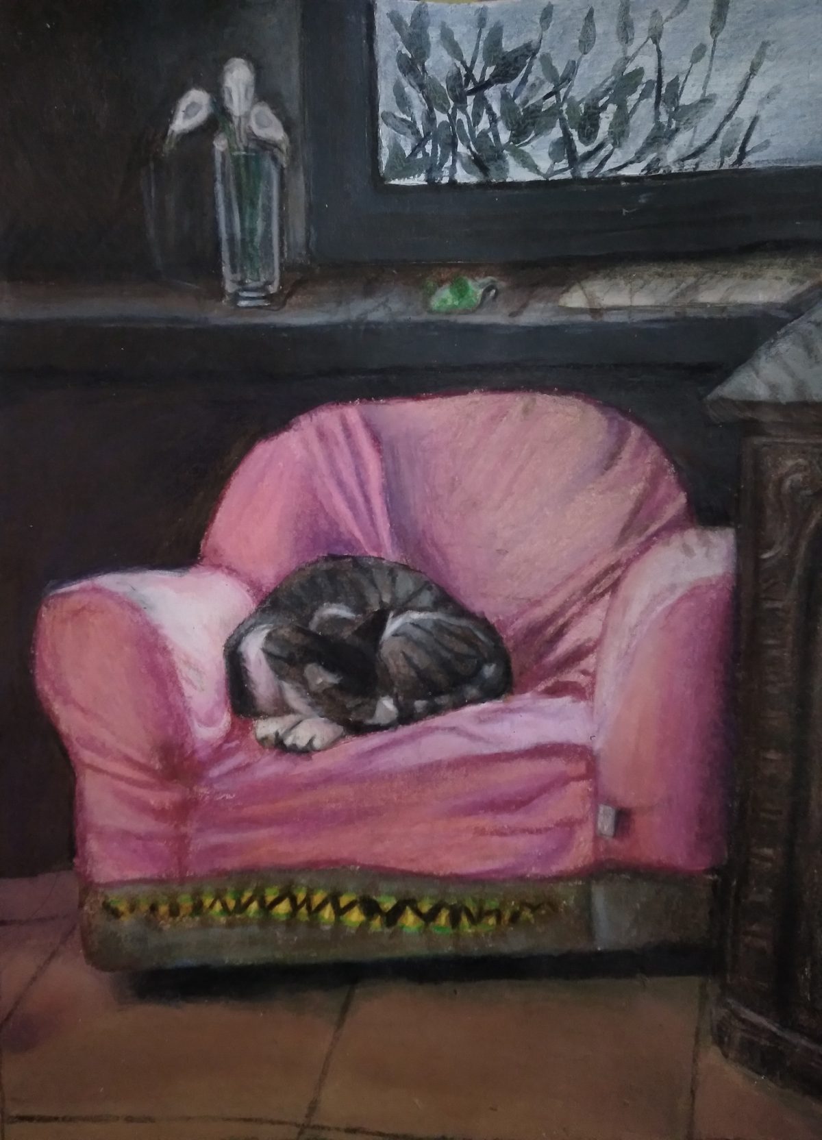 Artist Statement: I challenged myself to work with crayons. I pushed myself out of my comfort zone and made this piece. I usually work with digital software, pencils, and colored pencils. When I made something out of a medium that’s typically associated with children it can be unusual to see a complex drawing.