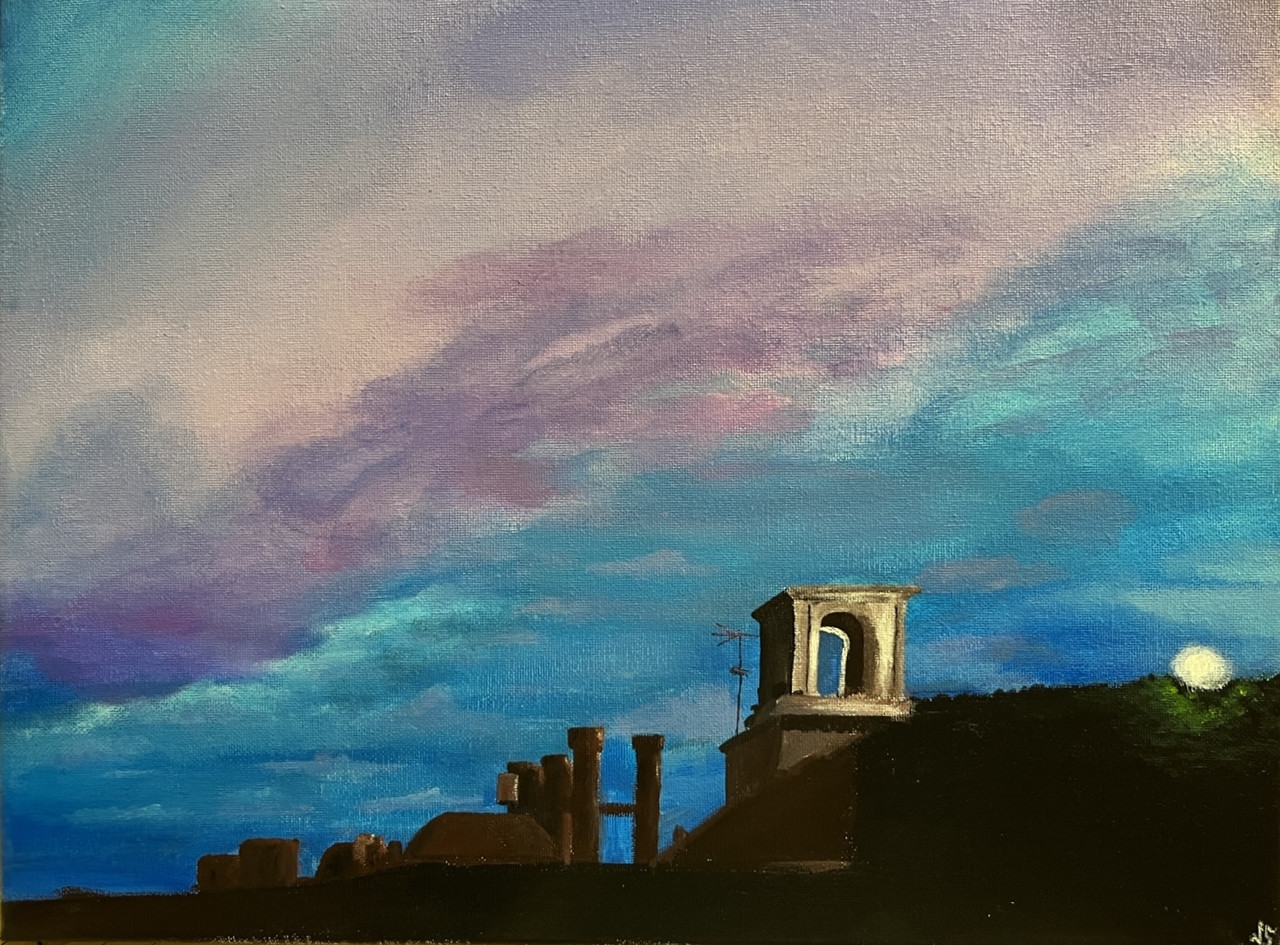 Description: Inspired by my art teachers trip to New Mexico, the sky was so stunning I had to paint and capture the beautiful skies. These colors is such a beautiful phenomenon to observe and admire. Artist Statement: Colorful skies is humanities entertainment .