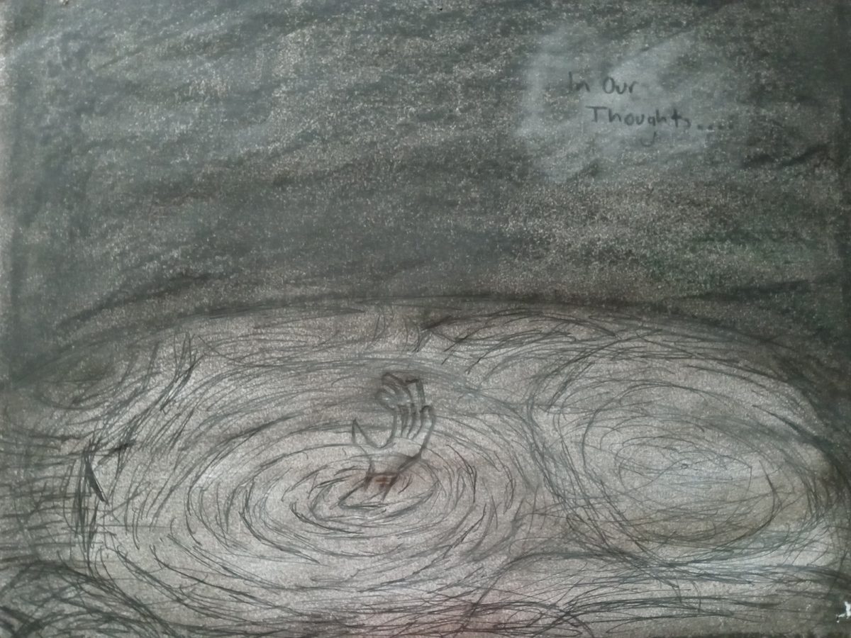 Artist Statement: This piece is about my discovery of my asthma but specifically how it is affected in the winter time. I wanted to show curiosity but also comfort by adding light and the dog as a companion in this scene.