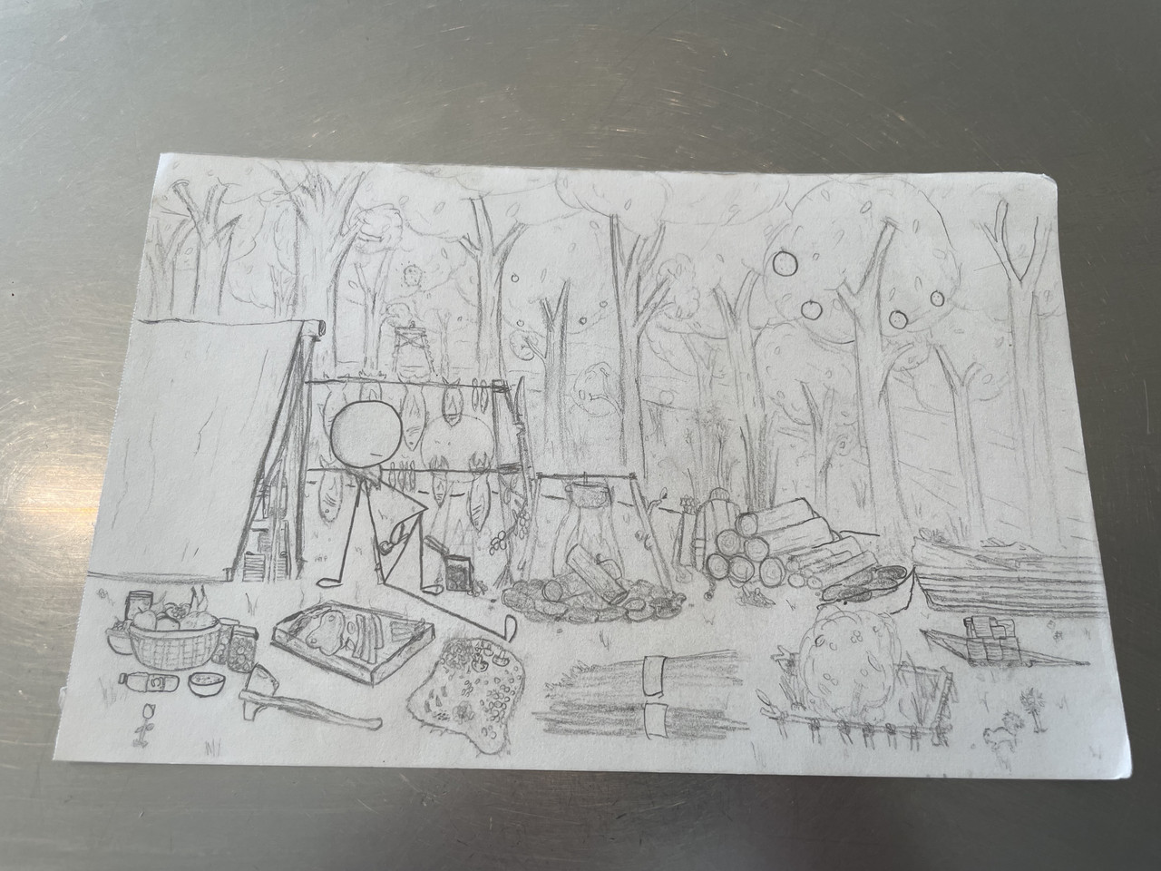 Artist Statement: I really just wanted to make a comfortable as well as peaceful scene. A survivalist in the woods with all the materials they need fit this perfectly.