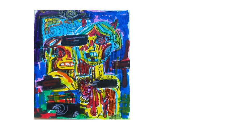 Description: The artwork I created was a Jean-Michel Basquiat inspired painting, which included various colors, ragged lines, swirls and blocks, and much more. To start my process, I got a scratch paper and a marker to sort of scribble down the vision I had of what I wanted to do, which made the execution process of the project a little easier. I named this artwork, “Mirror Invention.” This piece attempts to reflect the self image, such as the “ideal look” and how it’s different for everyone. This also reflects how someone could be so beautiful, so adored by other people with features that they absolutely despise. In this case, a girl is looking into a mirror, seeing this entirely different, distorted version of herself rather than a realistic vision. The mirror invents a new image, one that the girl does not like and that throws her into a state of insecurity and longing to look different.