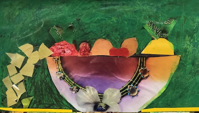 Materials: collage with pastels and paint sticks