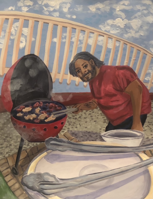 makes me proud to be a black women. I discovered Marian when I was reading about one of my favorite painters Laura Wheeler Waring, she painted a beautiful picture of Marian which got me inspired to learn more about Marian. When working on my painting I used oil paint for her creamy golden skin, and acrylic paint for her gown and the background. I decided to paint the back ground a blueish gray because she has such a striking presents I wanted her to be the focus of attention.