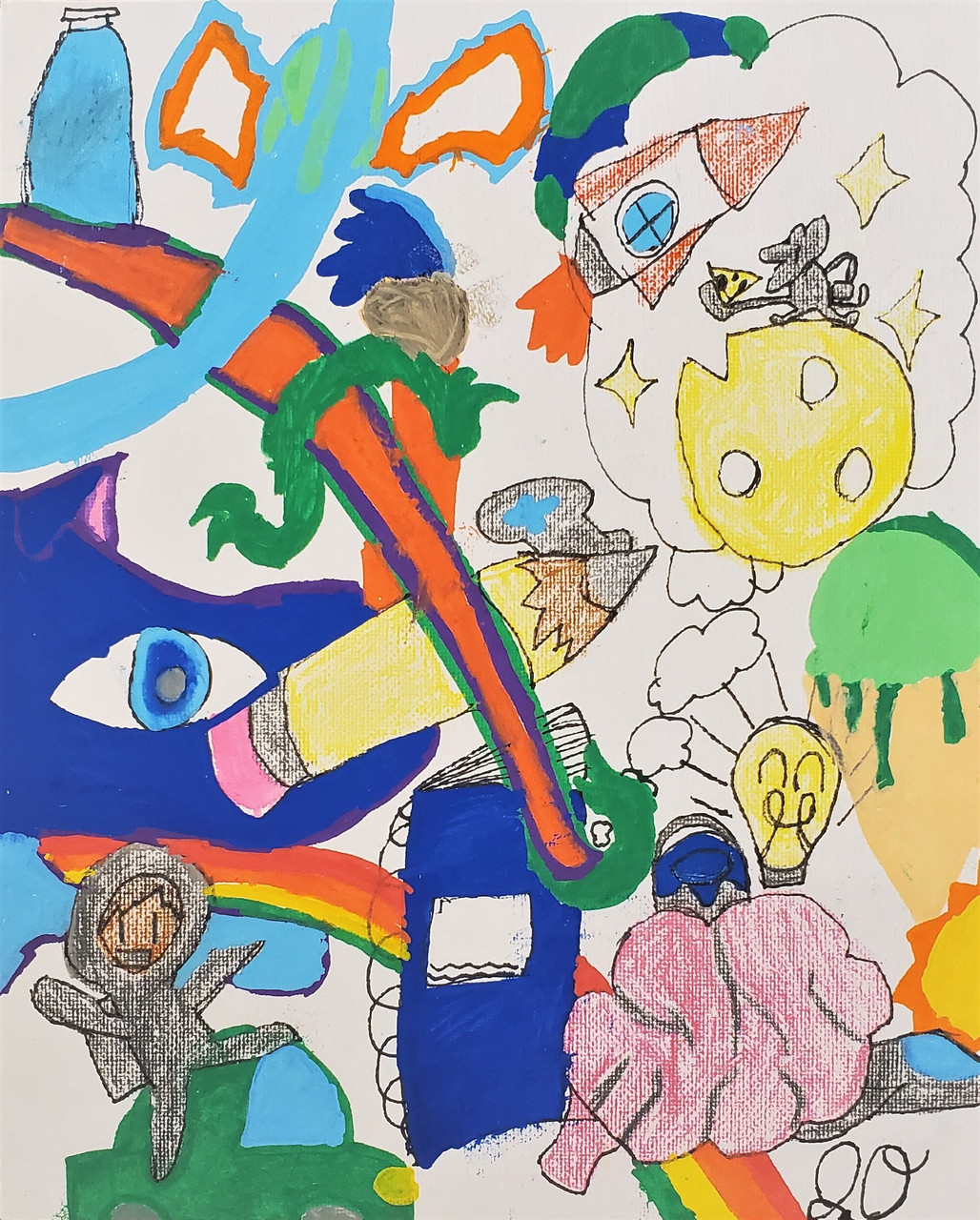 Artist Statement: I want to shed light onto a world that was forgotten by time, and illustrate the amazing organisms time has left behind. Through traditional techniques, I wanted to craft a world where human history meets the past. I’m inspired by the ink prints of Ukio-e and He Xiangning. Hog hair brushes and wood blocks make prints feel raw and natural, highlighting the surrealism of the world I’m building. I aimed to mesh paleo-fauna, the Meiji era, and fantasy into a layered world of samurai and saurians.