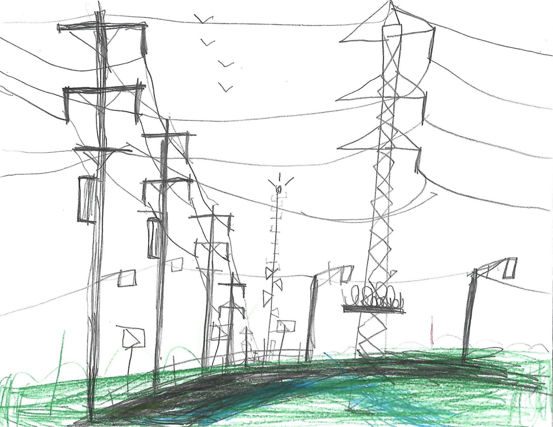 Artist Statement: Among all the noise of the city I like to look al the electric towers because it relaxes me to watch how they connect to each other.