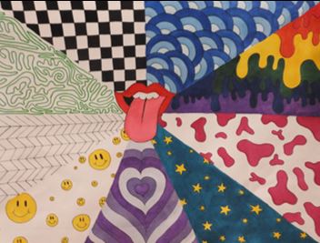 Materials: Acrylic on canvas; mixed media; charcoal; papier-mâché, paper, googly eyes, cardboard, tissue paper, cloth, tape, acrylic paint, tissues, hot glue.