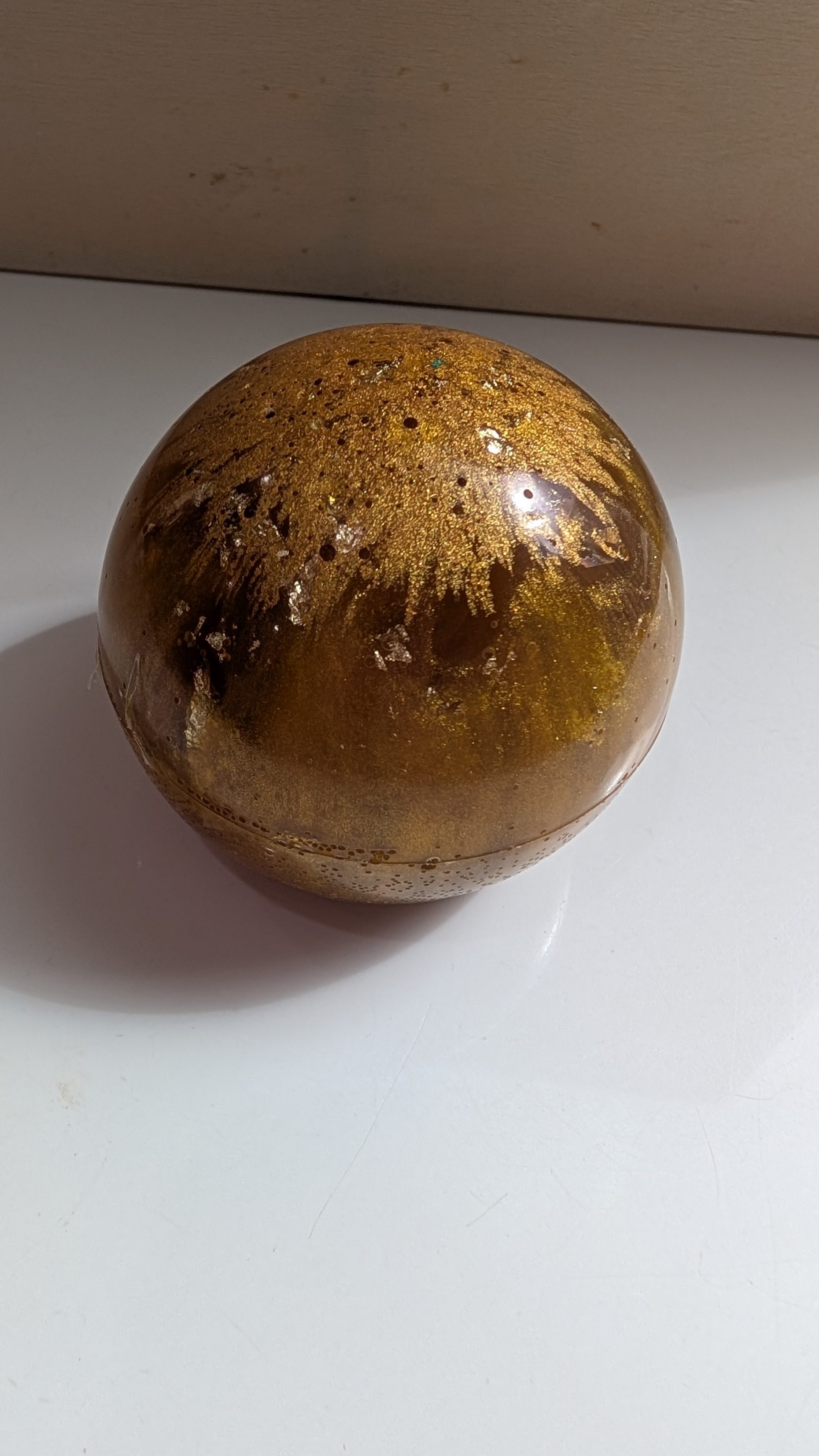 This is a resin ball made using a mold and alcohol dyes. It resembles the sun.