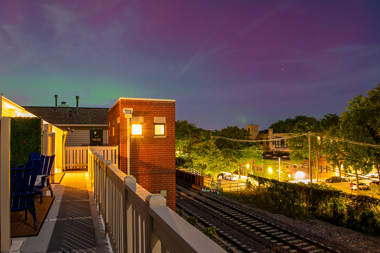 The Aurora Borealis, or Northern Lights makes a brief appearance over Chicago’s North Side just after 10pm