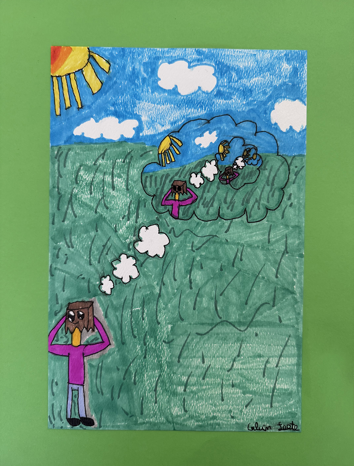 I created this piece considering the theme of dreams, and the character in the image is named Jimmy. I made him a while back just for fun, but I thought he would go great with the art submission. The theme is dreams, so I made Jimmy lying on the grass daydreaming of himself daydreaming of himself daydreaming of himself daydreaming of himself daydreaming, turning it into an infinite zoom picture.