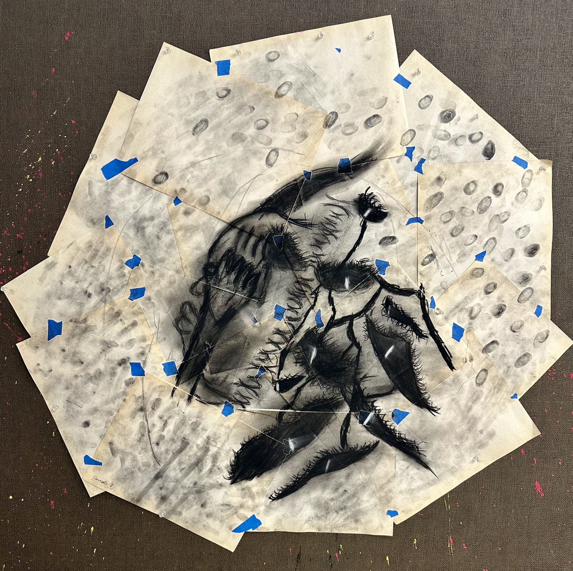 Materials: Newsprint, painters tape, charcoal, and white graphite.