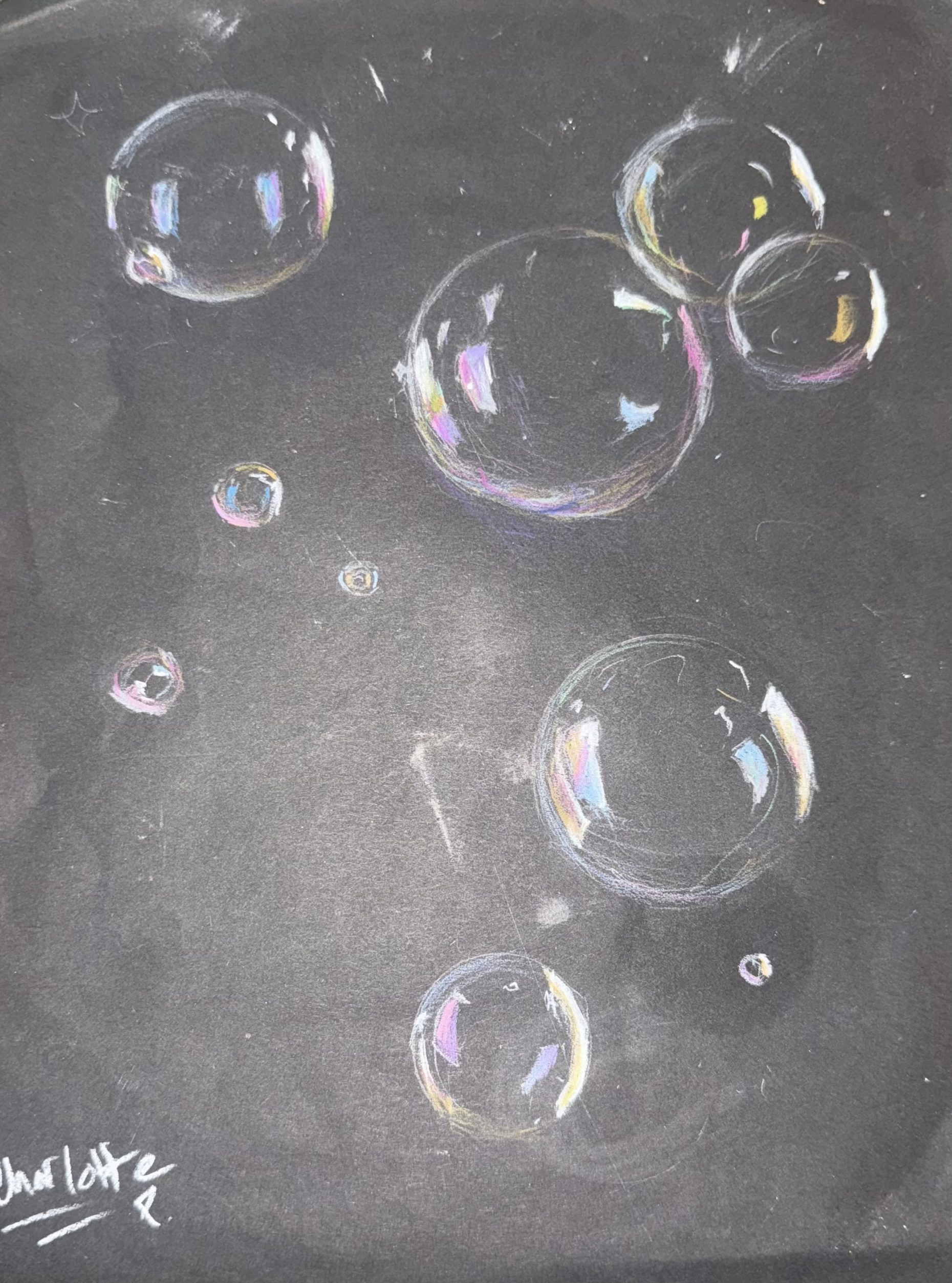This piece captures the realism of precious and delicate bubbles.