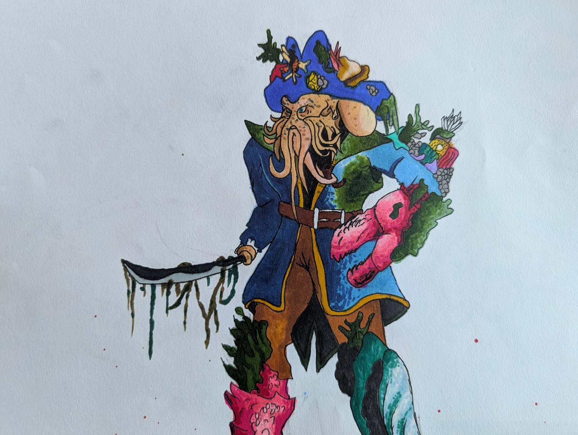Pencil drawing of Davy Jones colored using acid markers