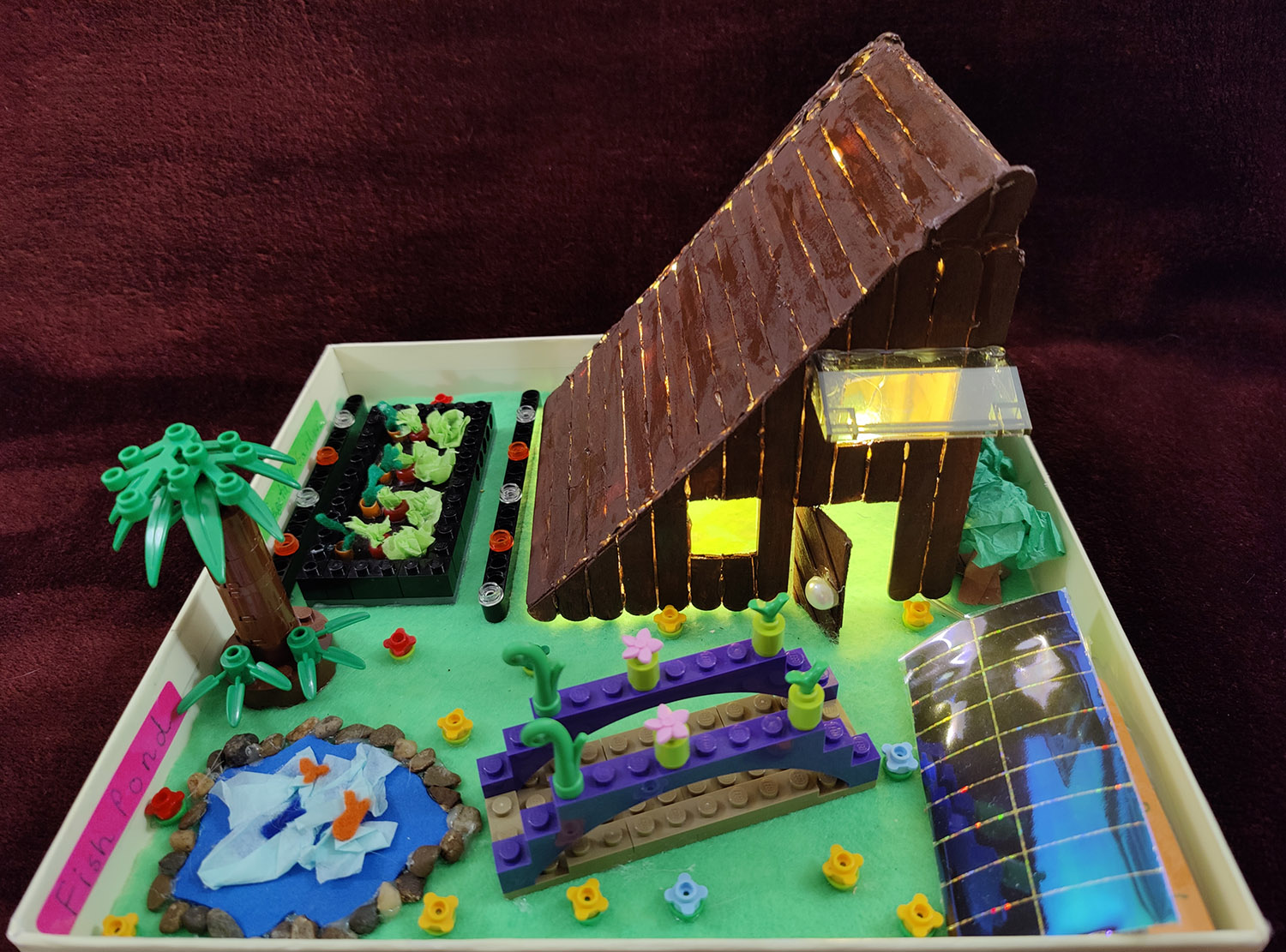 Materials: Brown Paint, Lego Blocks, Popsicle sticks, fabric, beads, cardboard, iridescent paper, fairy lights, tissue paper, foam paper, scratch art paper.