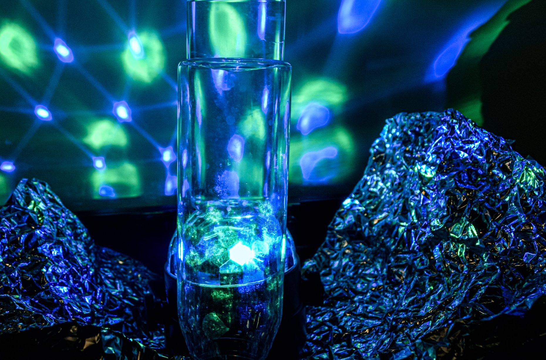 Materials: Aluminum Foil, LED Lights, Plastic Bottle, Water, Digital Camera