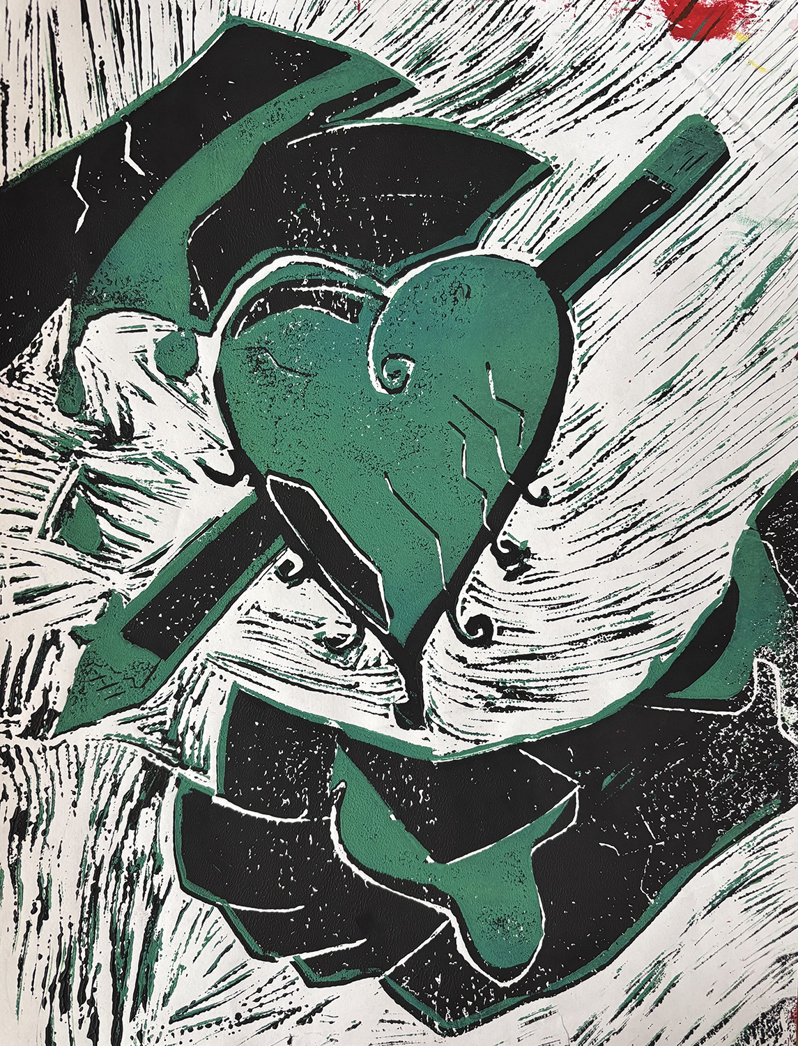 This piece depicts a bleeding heart, symbolizing heartbreak and new beginnings.