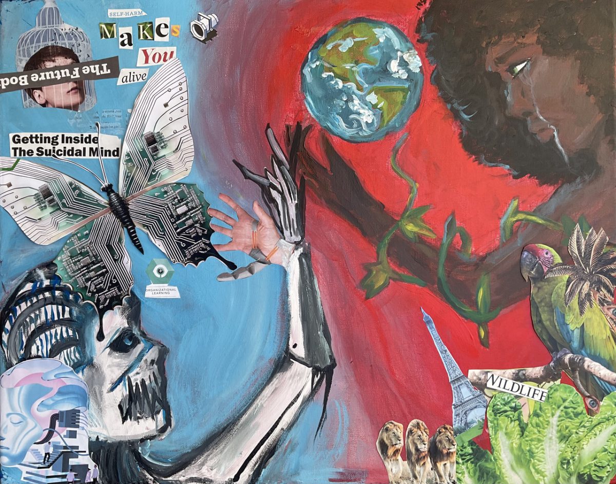 Materials: Oil Pastel; Colored Pencil; Cut Paper; Glue