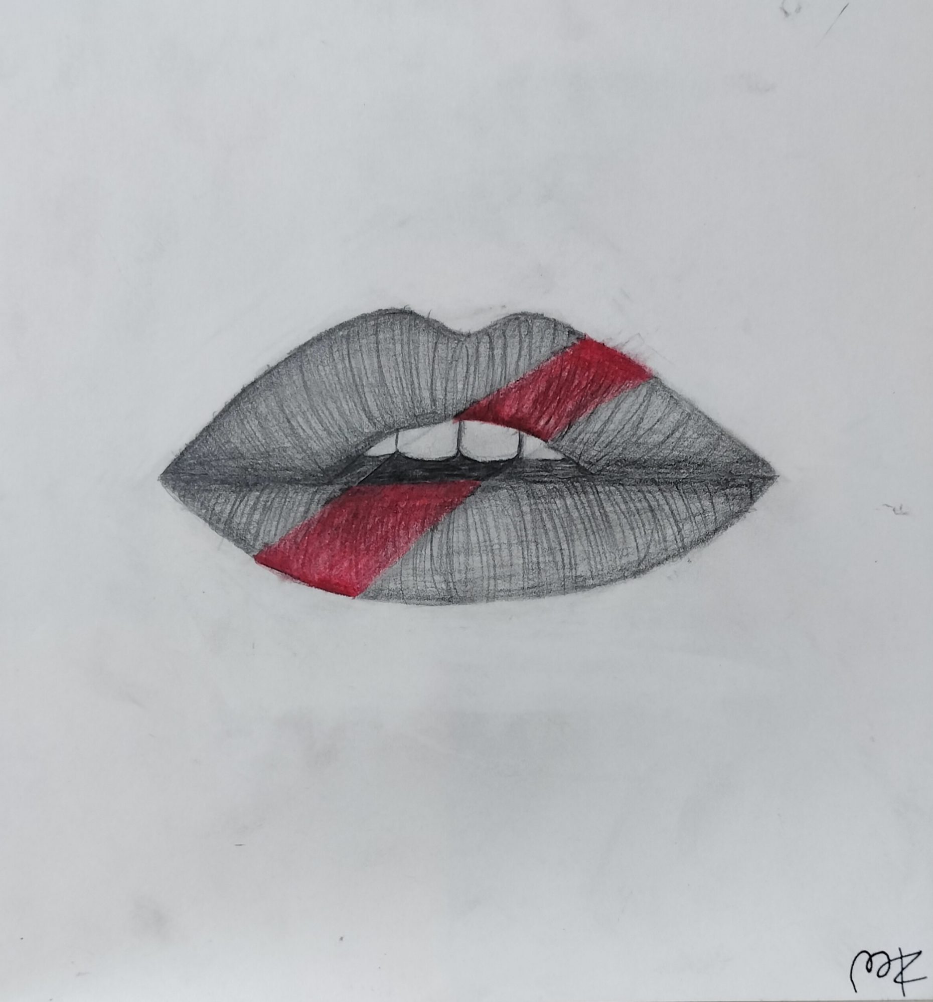 My piece of art is trying to show more than just a drawing of lips. If you look at it from a different perspective, this drawing represents that one thing about you that makes you different from everyone else. That one piece of you that makes you, yourself. I chose a drawing of lips because it can mean many things, like a secret that is only spilled between two friends, or a pebble hitting a dark pond that causes color to spread. I’m personally very proud of this piece, and I hope others care to look under the surface and see the deeper meaning of this drawing.