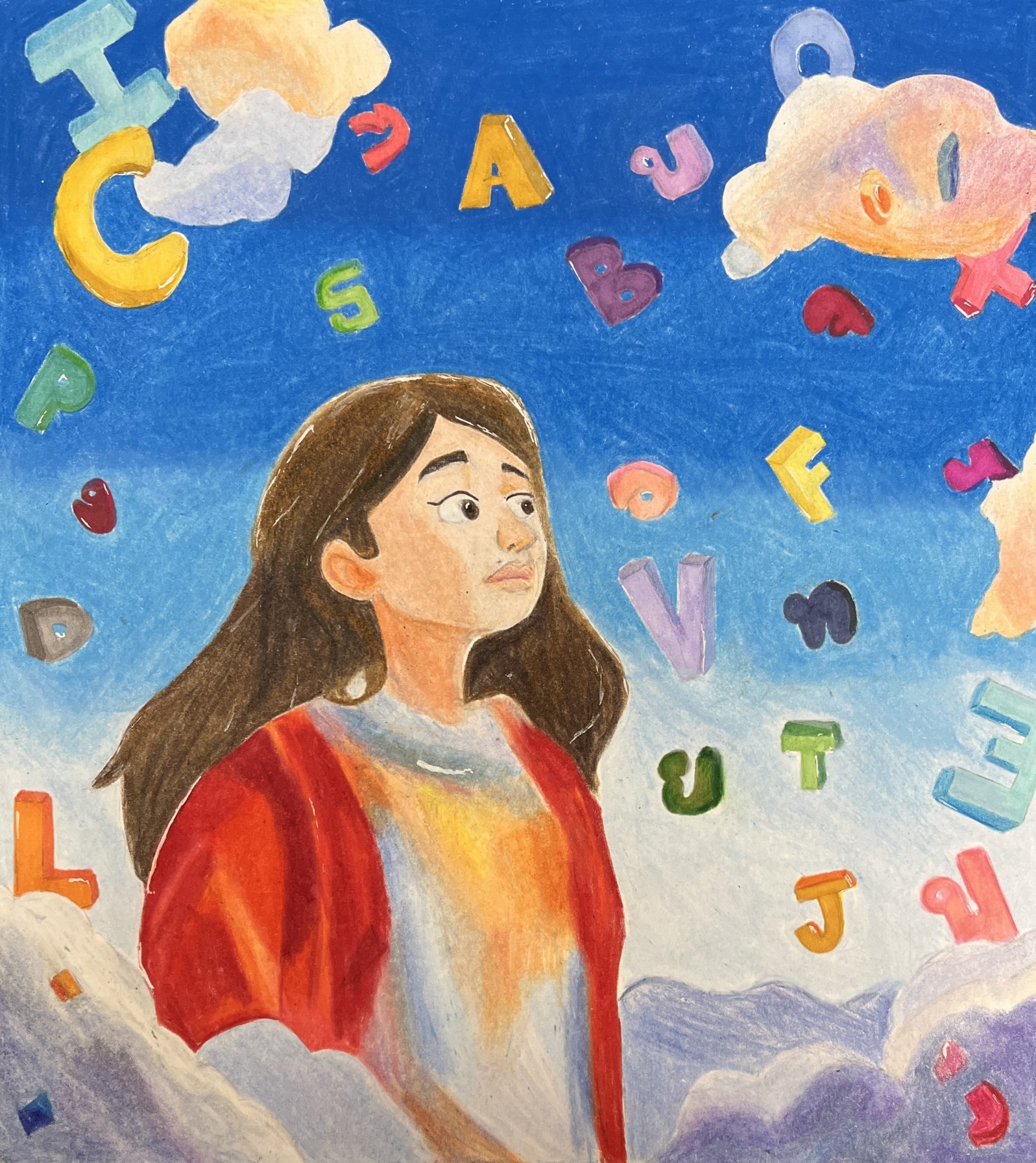 My artwork is about feeling confused and lost with both English and Thai. I grew up in Chicago, but my first language is Thai. I struggled with speaking English as a kid, and this is something I want to show the world: being bilingual is hard, and that’s perfectly normal.