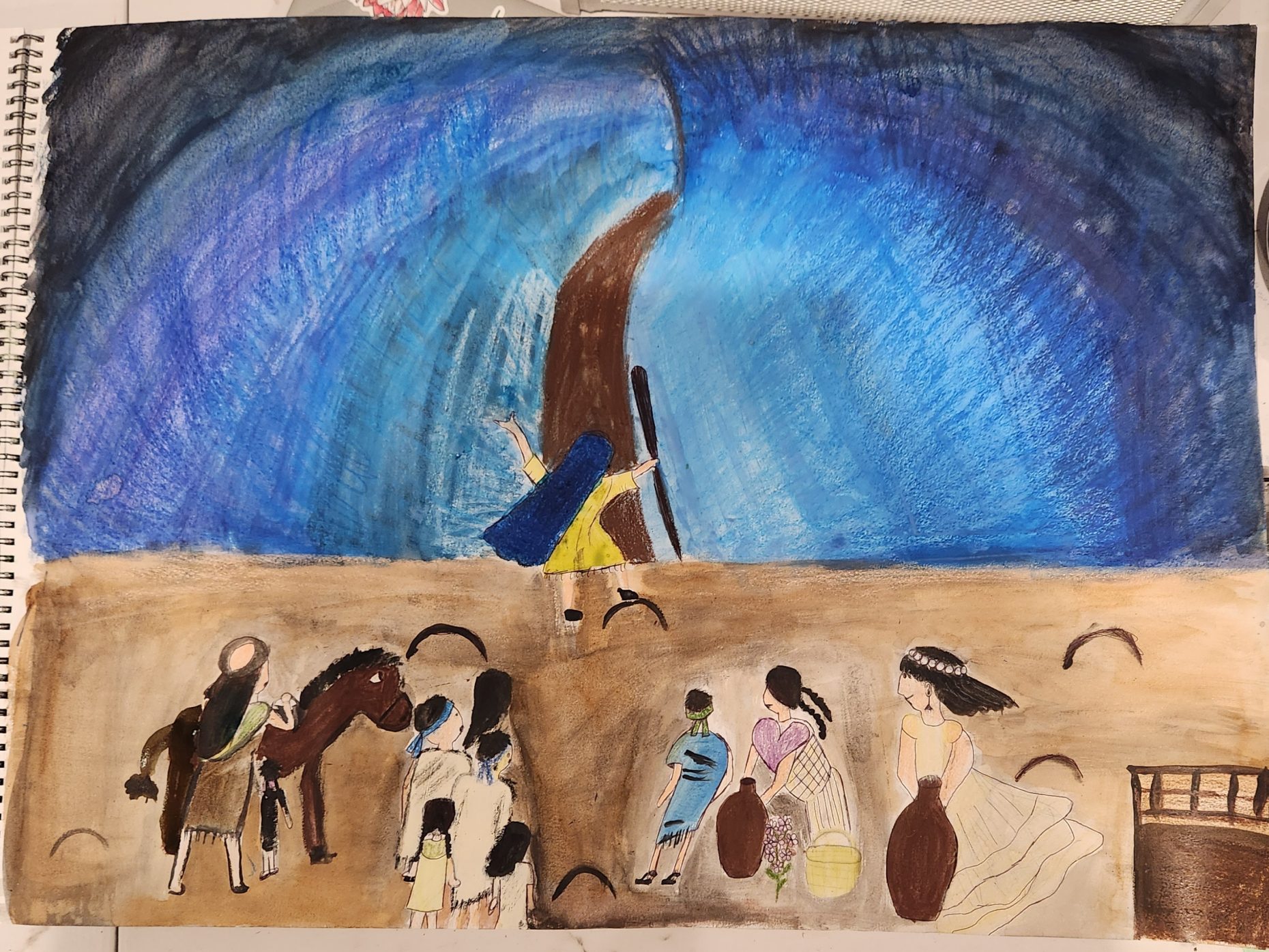 I drew Moses parting the Red Sea because I love the story of how he asked God for help and saved his people.