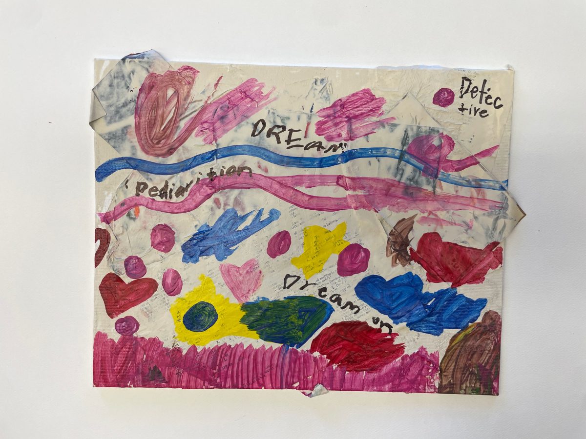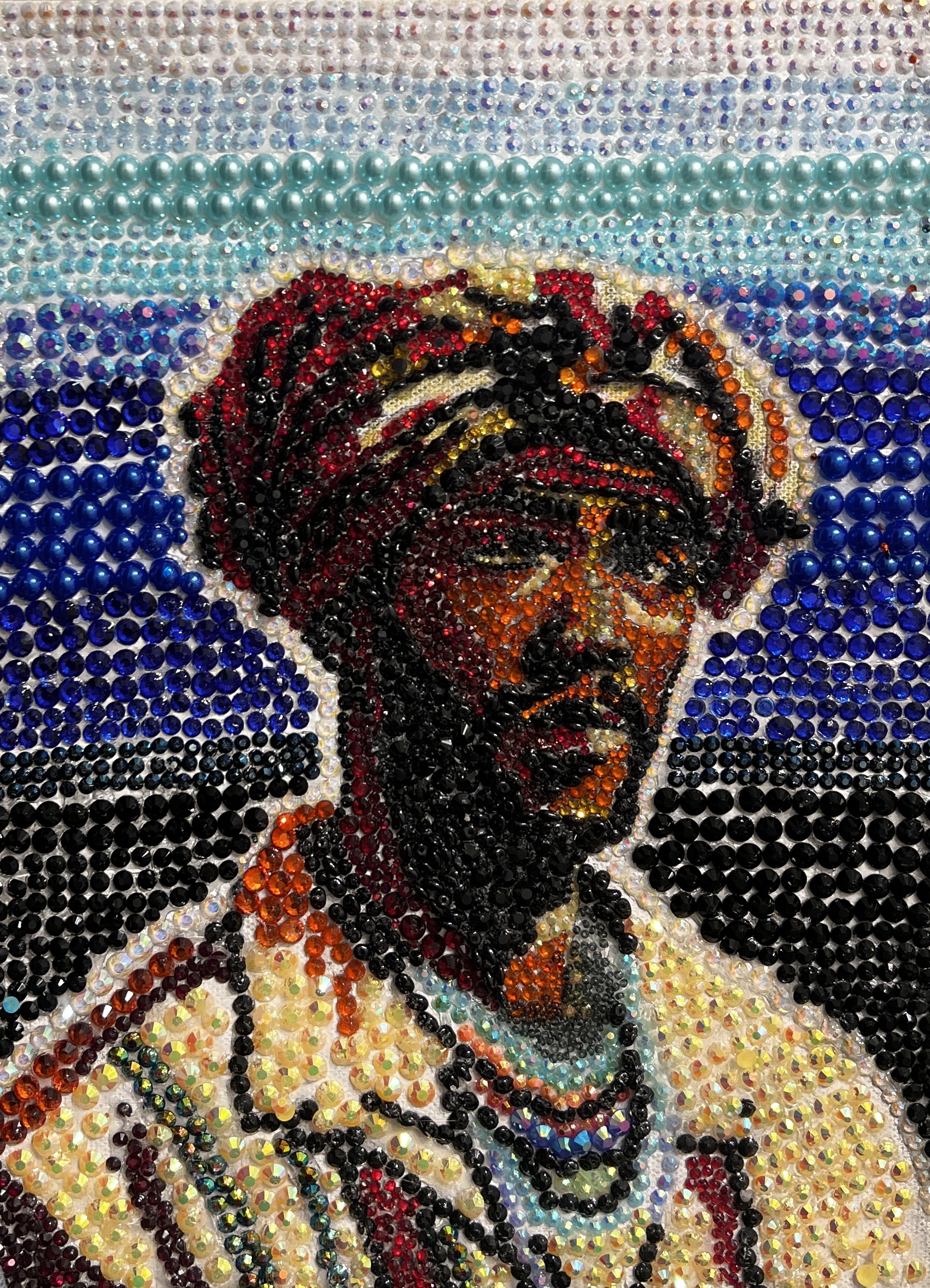 I created this artwork using beads and rhinestones. I wanted this piece to reflect how black culture is a huge inspiration for my work. I named this piece “Shujaa” which is the Swahili word for brave/ courageous.