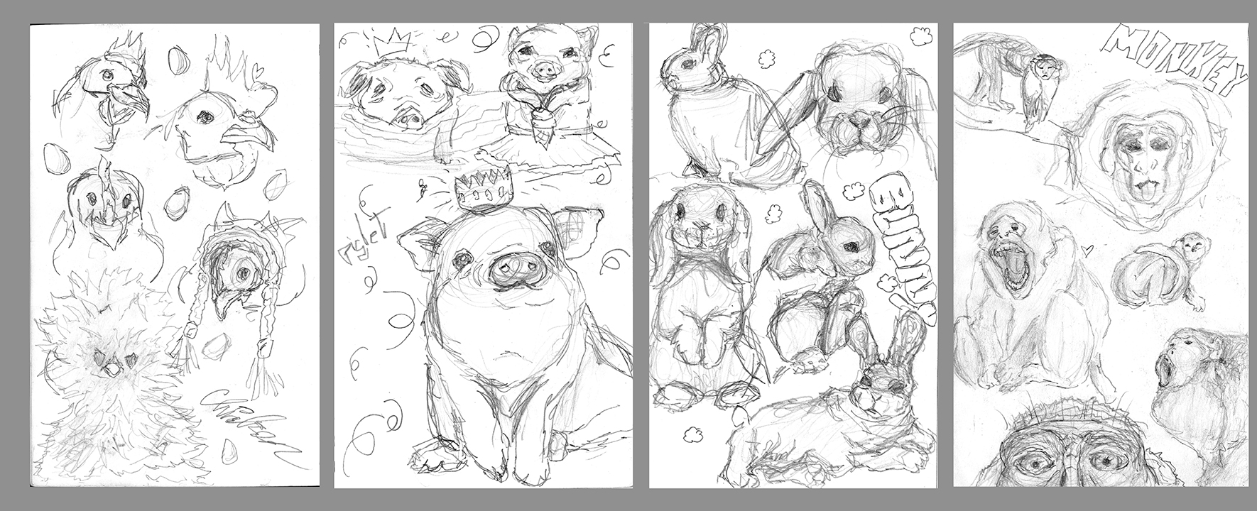 Materials: quadriptych, pencil drawing