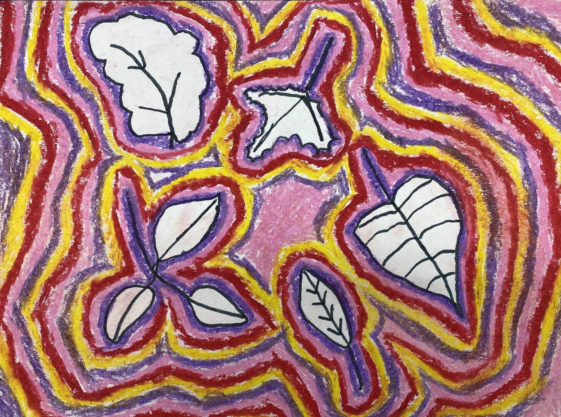 For this Piece I used my favorite color for the concentric lines. I drew leaves because I like jumping in the leave in fall.