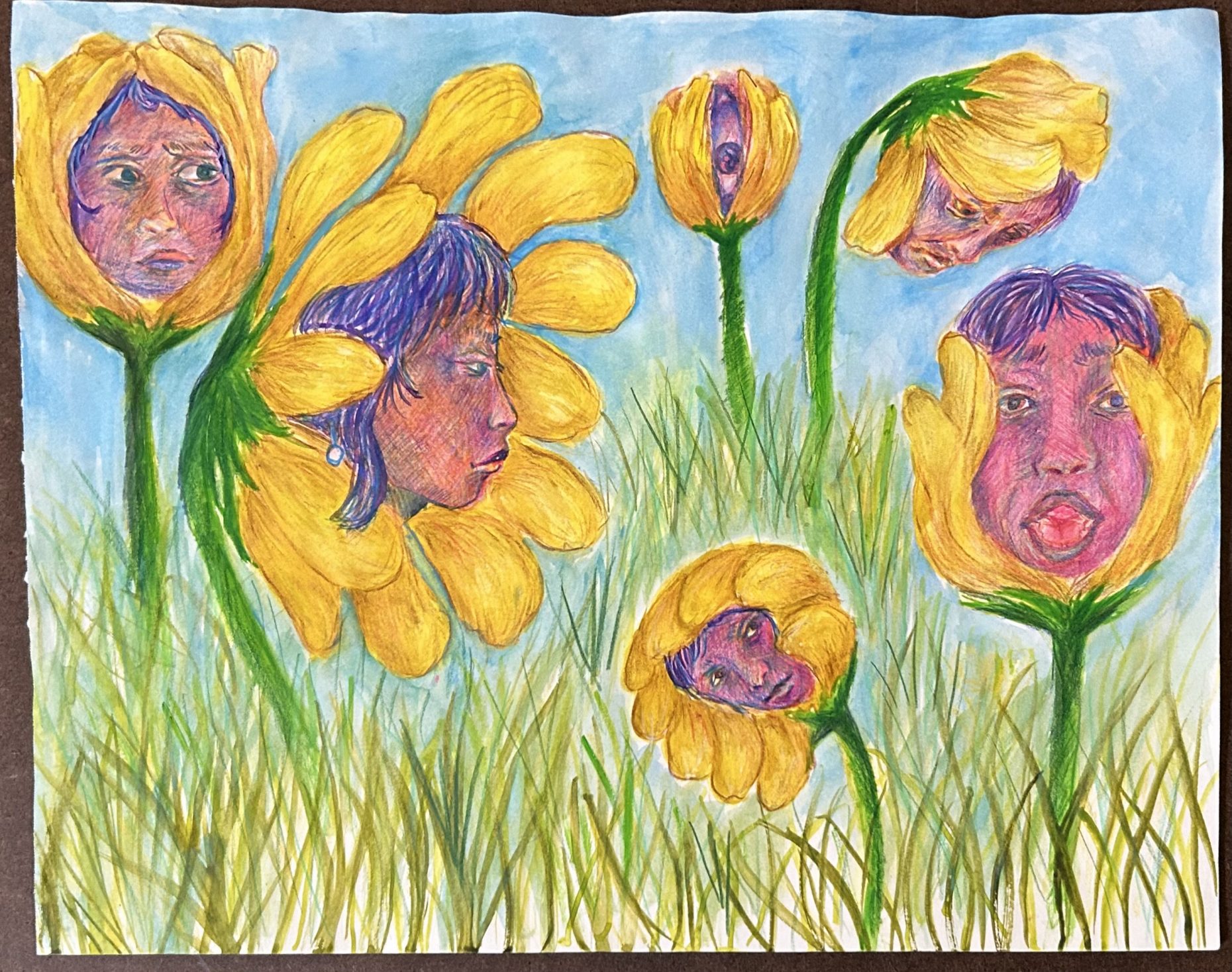 I create abstract self-portraits using charcoal, watercolor, and colored pencils, exploring themes of self-discovery and emotion.