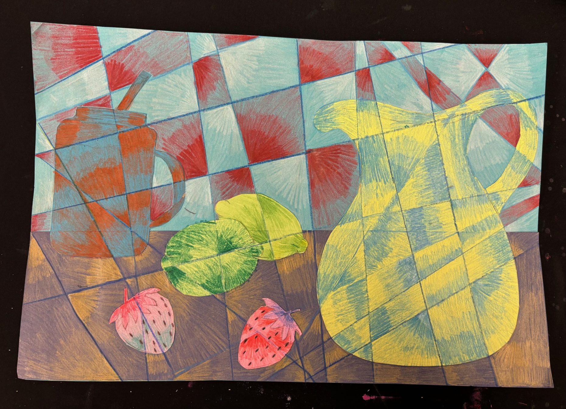 Still Life drawing using color and value, inspired by the Cubist work of Pablo Picasso.
