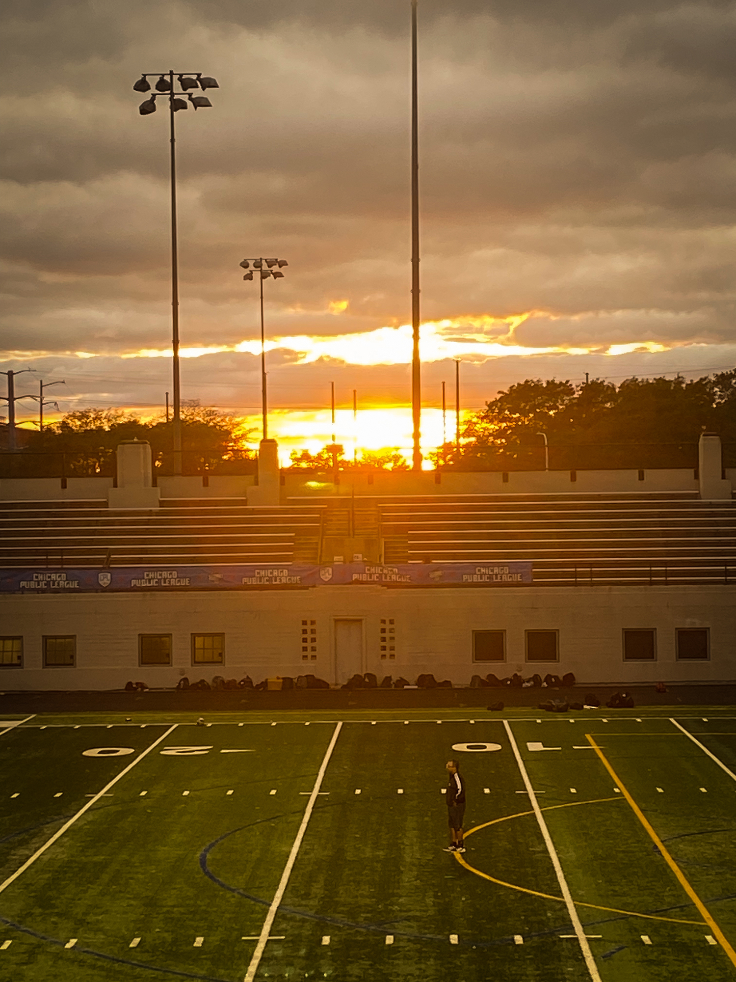 It was a late night game about to start when the sun set behind the stands and gave a warm glow to the entire area.