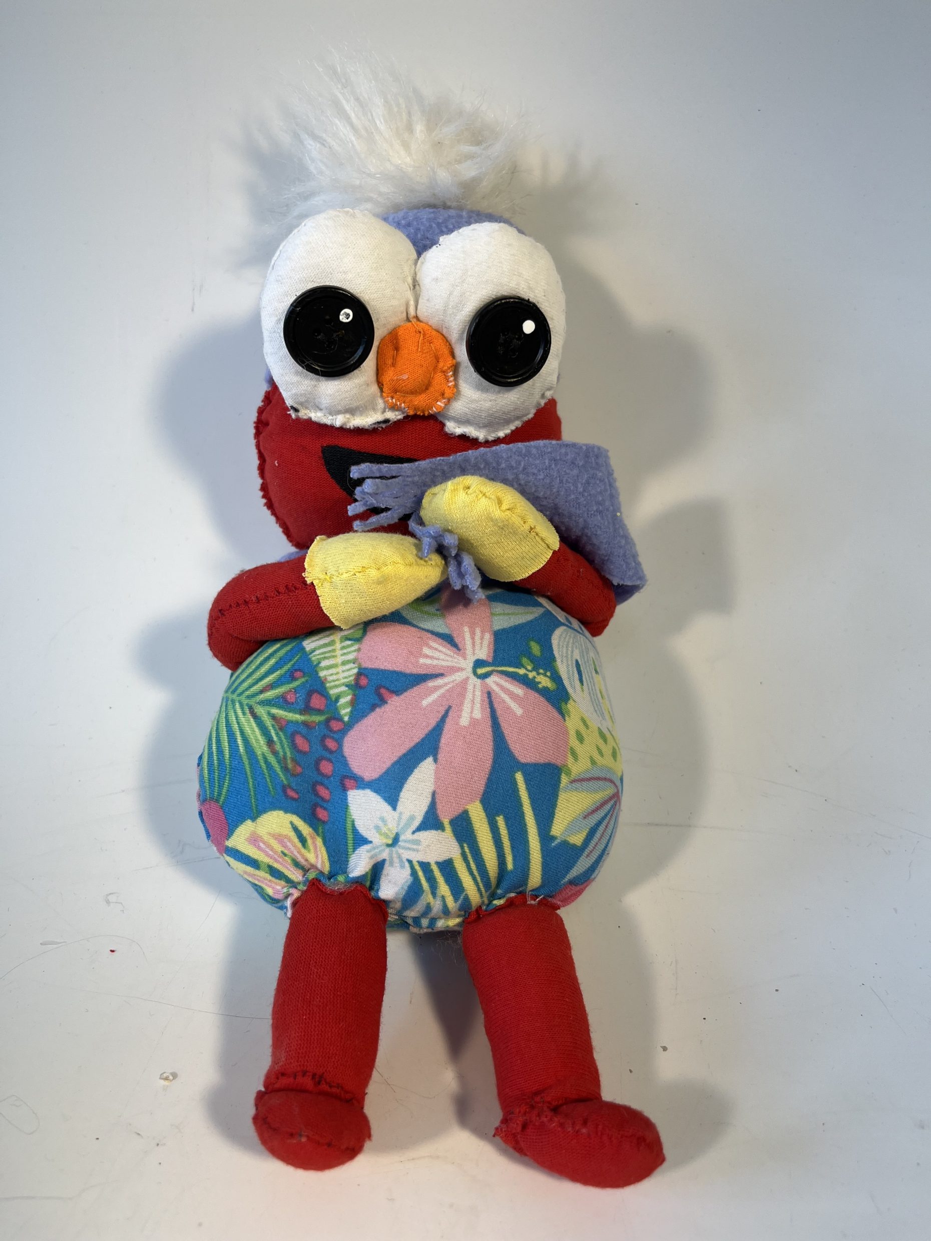 This artwork represents the comfort I felt with the show “Elmo” asa child. I hand sewed this with scrap fabrics and needle and thread.
