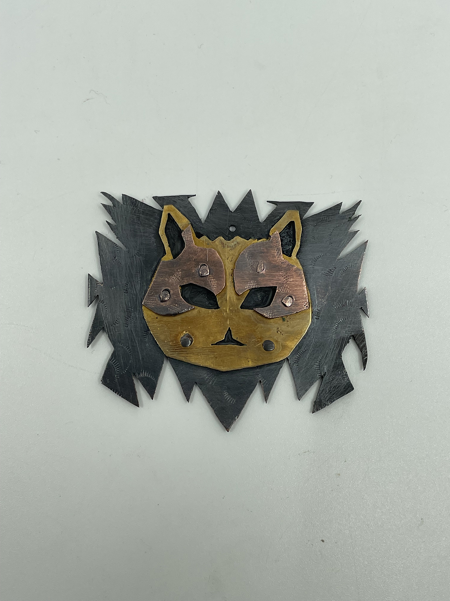 Materials: Copper, brass, liver of sulfur, torch, rivets, files, sandpaper, metal stamps, and saw blades