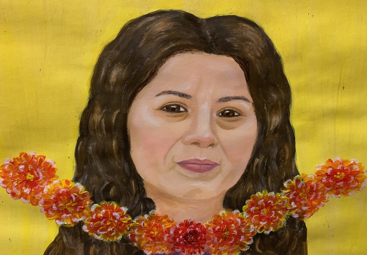 Artist Statement: In the beginning, my artwork didn’t have a specific meaning. But as I continued to work on it the meaning started to change, it focuses on nature. The very bright, bold colors in the border are intended to try and distract you from the inside. The inside is trying to bring awareness to nature. It’s all very abstract, with the bright border and the flowers that are hanging upright instead of down.