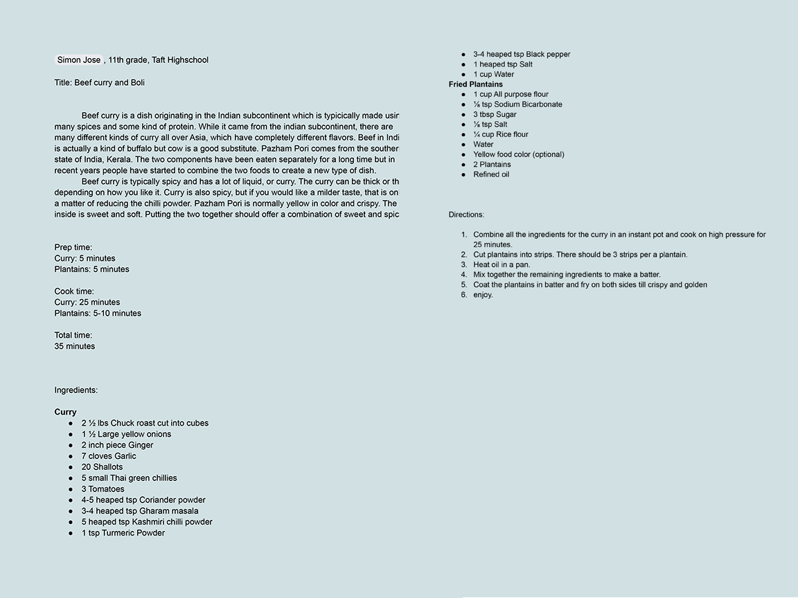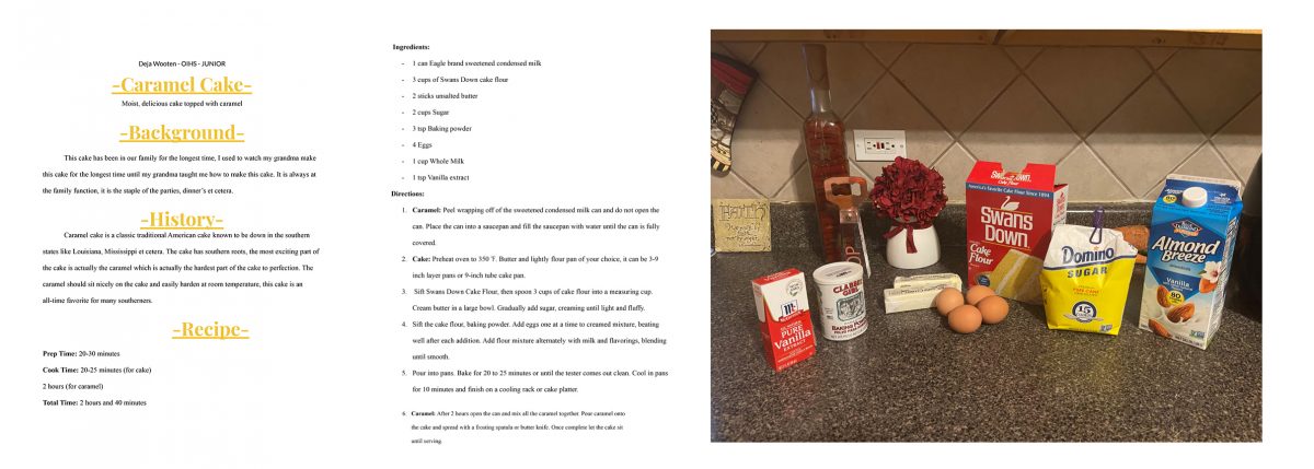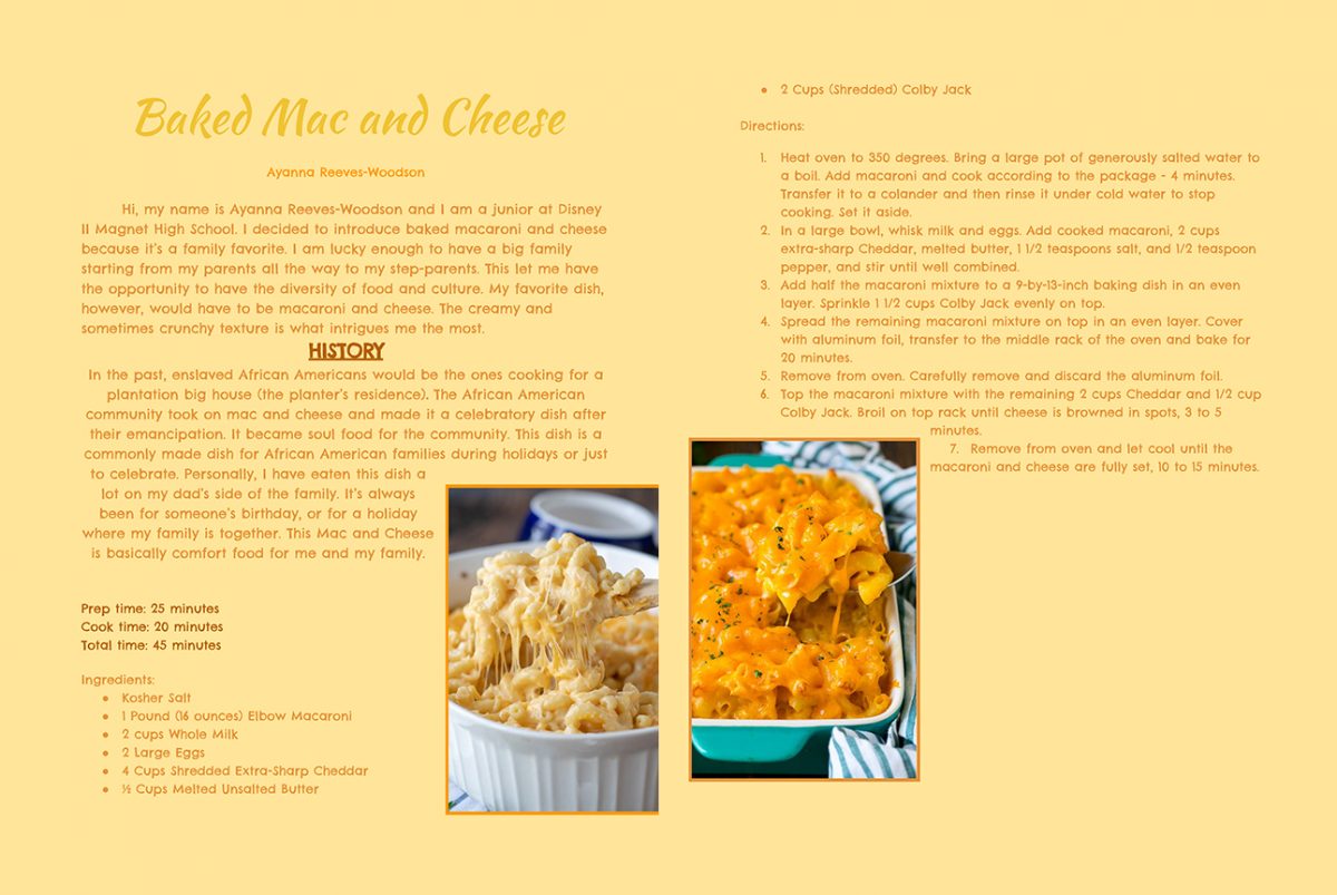 This year, AAP Culinary faced a new challenge, cooking at home! However, in that challenge, we found an advantage, having our classroom be part of our house, the kitchen. Since home cooking is such a big part of our lives, this year and last year, more than ever, we figured we would bring you inside our kitchens with “A Taste of Home”. In this exhibit, you will see a personal recipe and video made by each member of the AAP Culinary Arts.