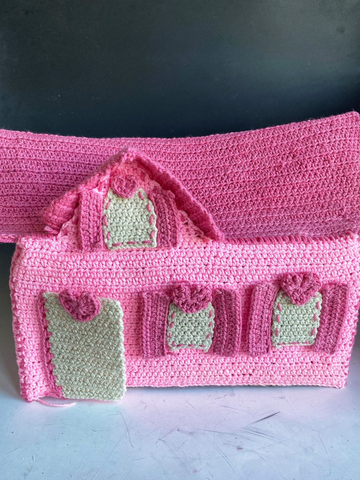 Strawberries and pink everywhere! Throughout AAP, I embraced my personal aesthetics in my creations and fashioned (especially the gingham print on) lovely projects that make me happy. I hope they make you happy too, just like a welcome hug! Just like my crocheted house!