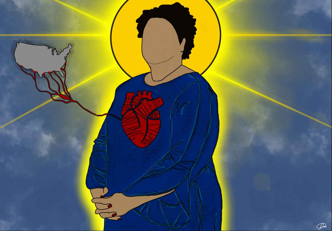 Artist Statement: My intention for picking Stacey Abrams as a symbolic icon for this particular piece of art was because of the current political shifts after the Georgia Senate Elections and the Presidential Elections in 2020. I am passionate and engaged in what’s happening in American politics, and recently, Georgia has been a topic of interest for political connoisseur because of its changing demographics. Georgia has been a reliable Republican state in the last 20 years, but with the shifts that took place it is now turning purple due to Ms. Abrams efforts.