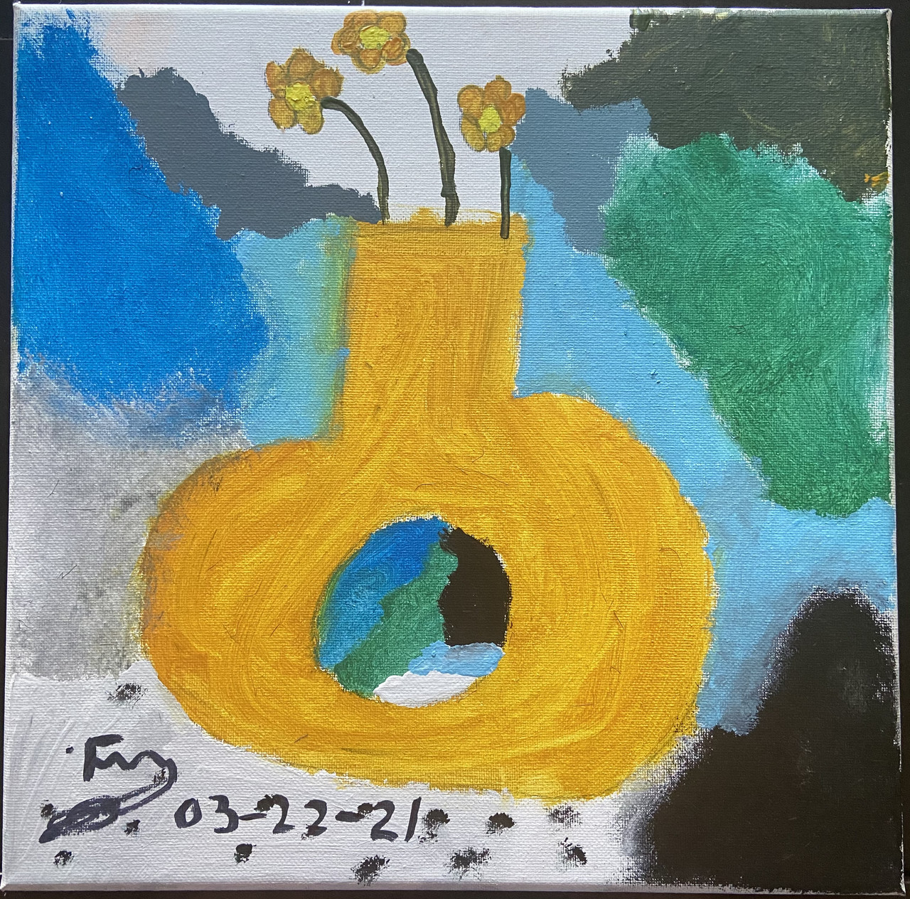 Description: My drawing is a vase that inspired me one day that I went to a bakery with my mom and decided to paint that because I like it.