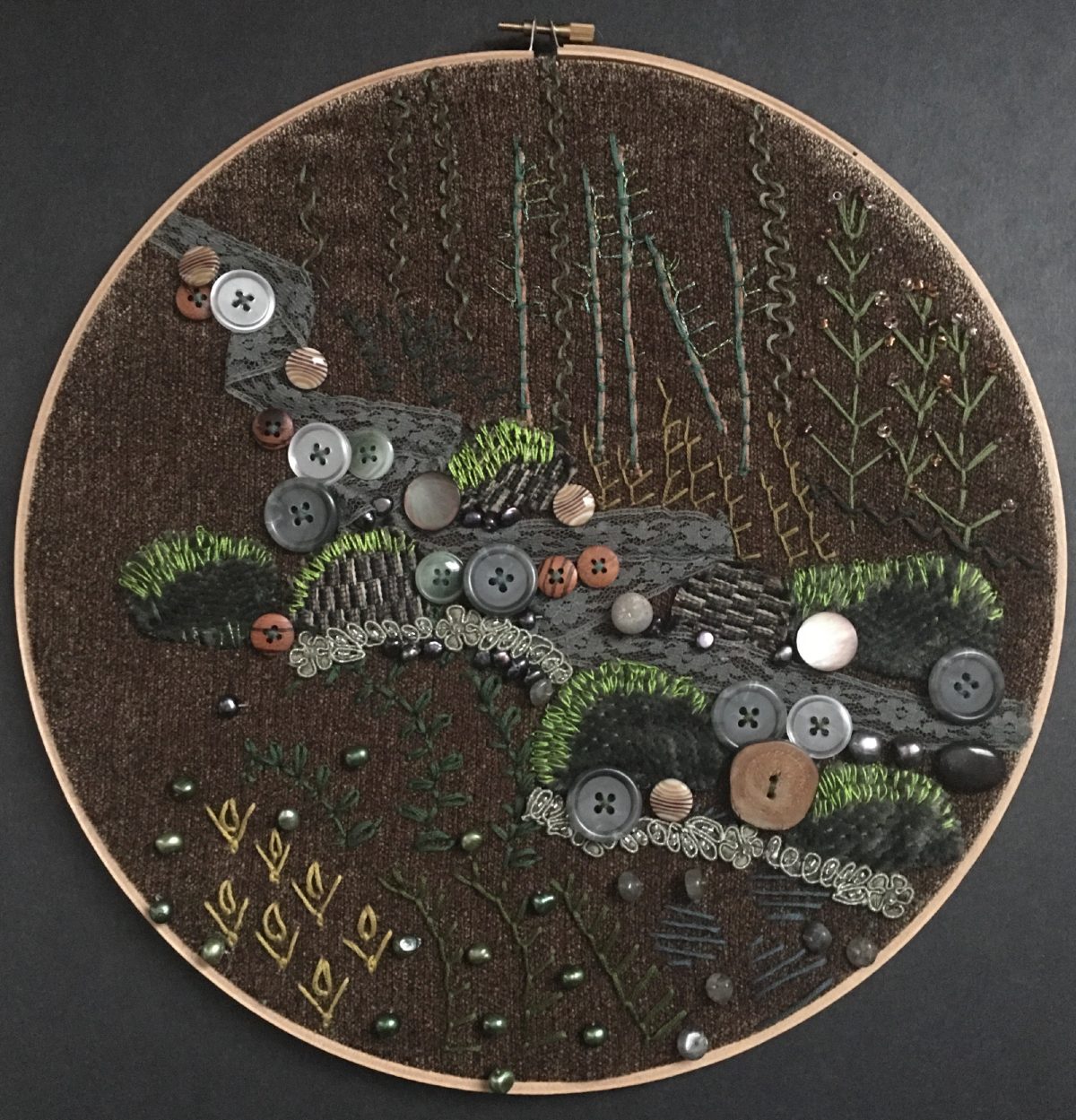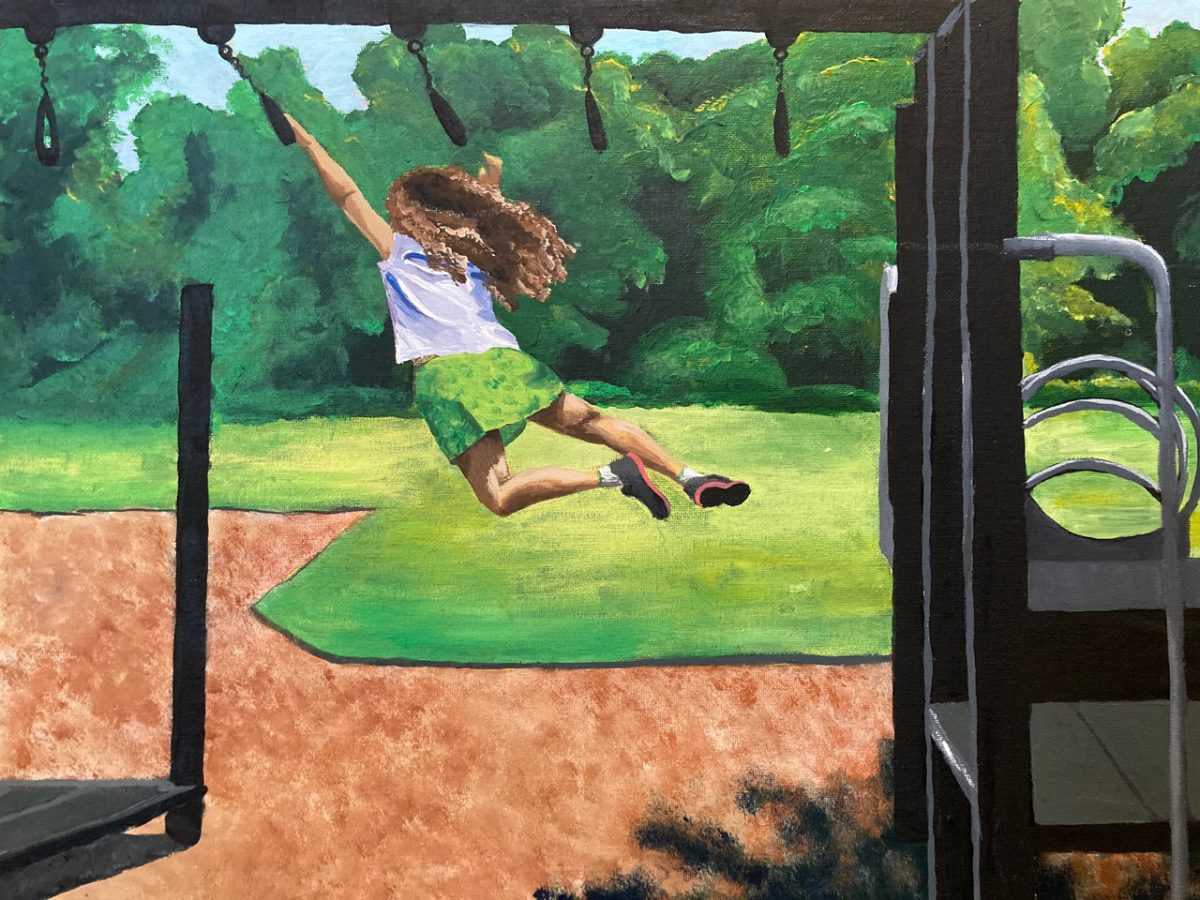 Artist Statement: This acrylic painting was made because I wanted to visually represent memories I had from my childhood. Growing up in Chicago my parents didn’t have a car and I was fascinated by CTA trains. I remember the different styles of train cars. I have memories of the windows that opened and closed with the breeze coming in. Looking at the maps of train routes helped me pass the time until my stop.