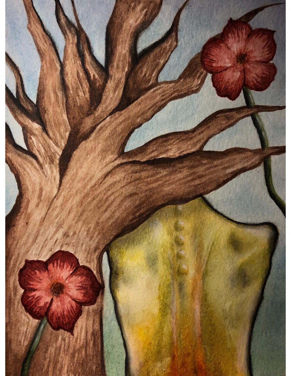 Artist Statement: I made this piece because I was thinking about the free spirit of summer and going on long walks with my dog Zeus. These are two things that make me happy, and I wanted to portray that feeling in an impressionistic snapshot painting.
