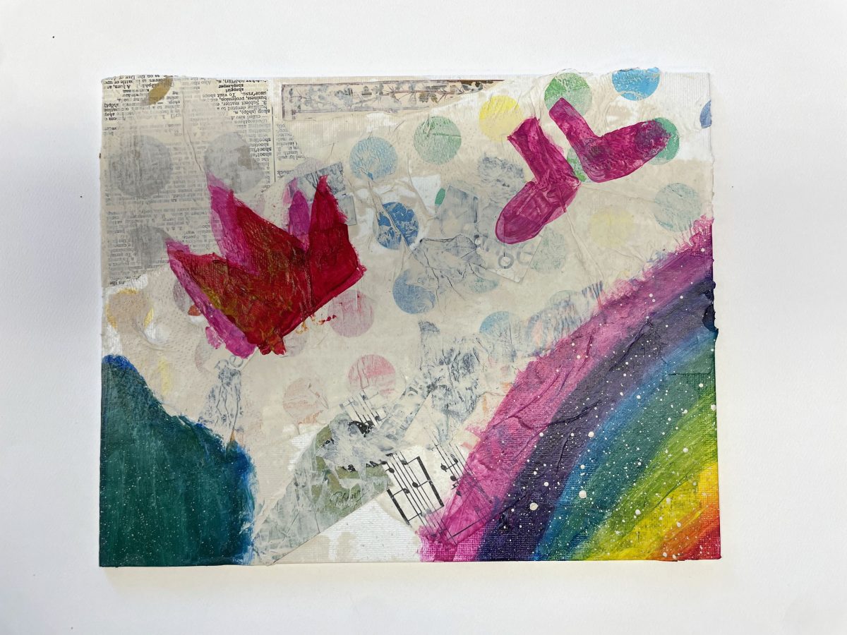 Description: My piece is acrylic, mixed media materials such as electrical wires and lights to represent the mechanical side of technology. I wanted to talk about the addiction of social media and how we rely on it for socializing. The joy and feeling one gets when using applications and how it makes you internally feel, it almost make you light up!