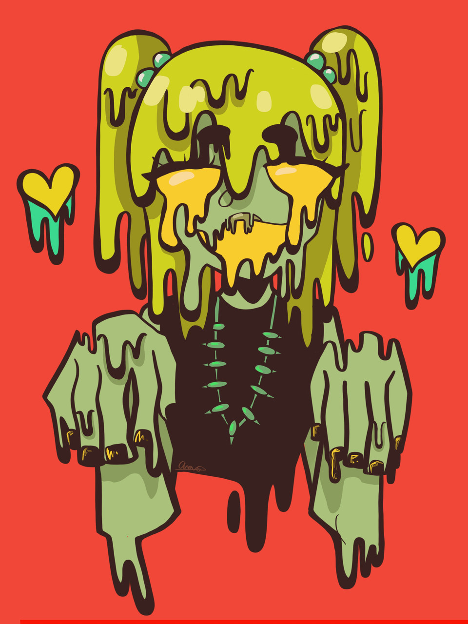 Description: This one connects more to emotion than just trying out a new technique. This character shows what being nervous might feel like, maybe like you’re melting. I thought that drip art would be a perfect example for that. It was really fun to draw!