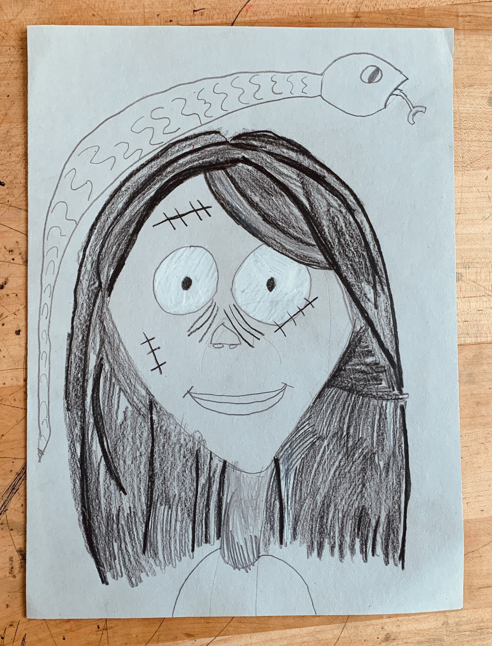 Description: For this project, students explored architecture and afrofuturism inspired by Bodys Isek Kinglez. Students brainstormed types of buildings and businesses they thought belonged in an ideal society and drew one of those from a hat to see what building they would create using paper building techniques in their idealized world.