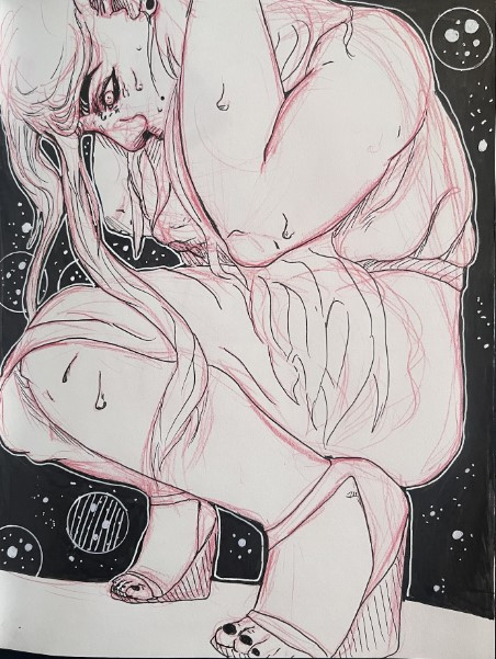 Description: This drawing was originally a perspective practice sketch, but I turned it into a fully inked-in art piece.