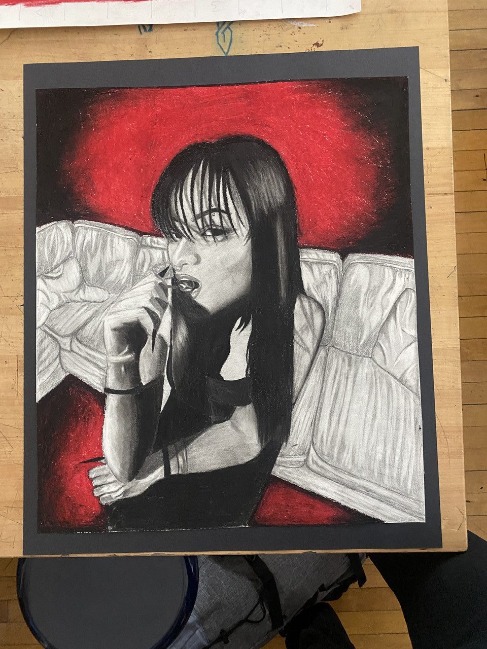 Artist Statement: Inspired by my two friends’ love story, this piece demonstrates how relationships between people may not always start out perfect. Feelings were originally present, but nothing further was pursued by one side. But throughout time, feelings grew stronger and what seemed impossible became possible. The female of this story is the hand pouring out boba from their first date, while the male, that always waited is the hand wiping up the spill.